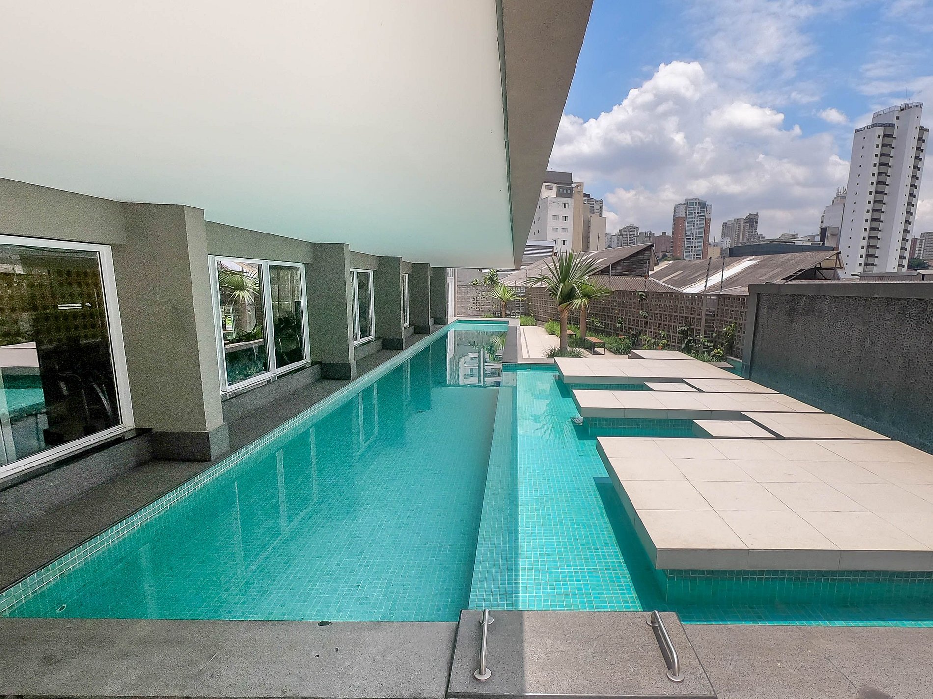 O acesso às instalações do prédio, como a academia moderna, lavanderia compartilhada, espaço de coworking, bicicletário, piscina e o mini-mercado de autoatendimento, está incluído, proporcionando uma experiência de estadia enriquecedora e conveniente.