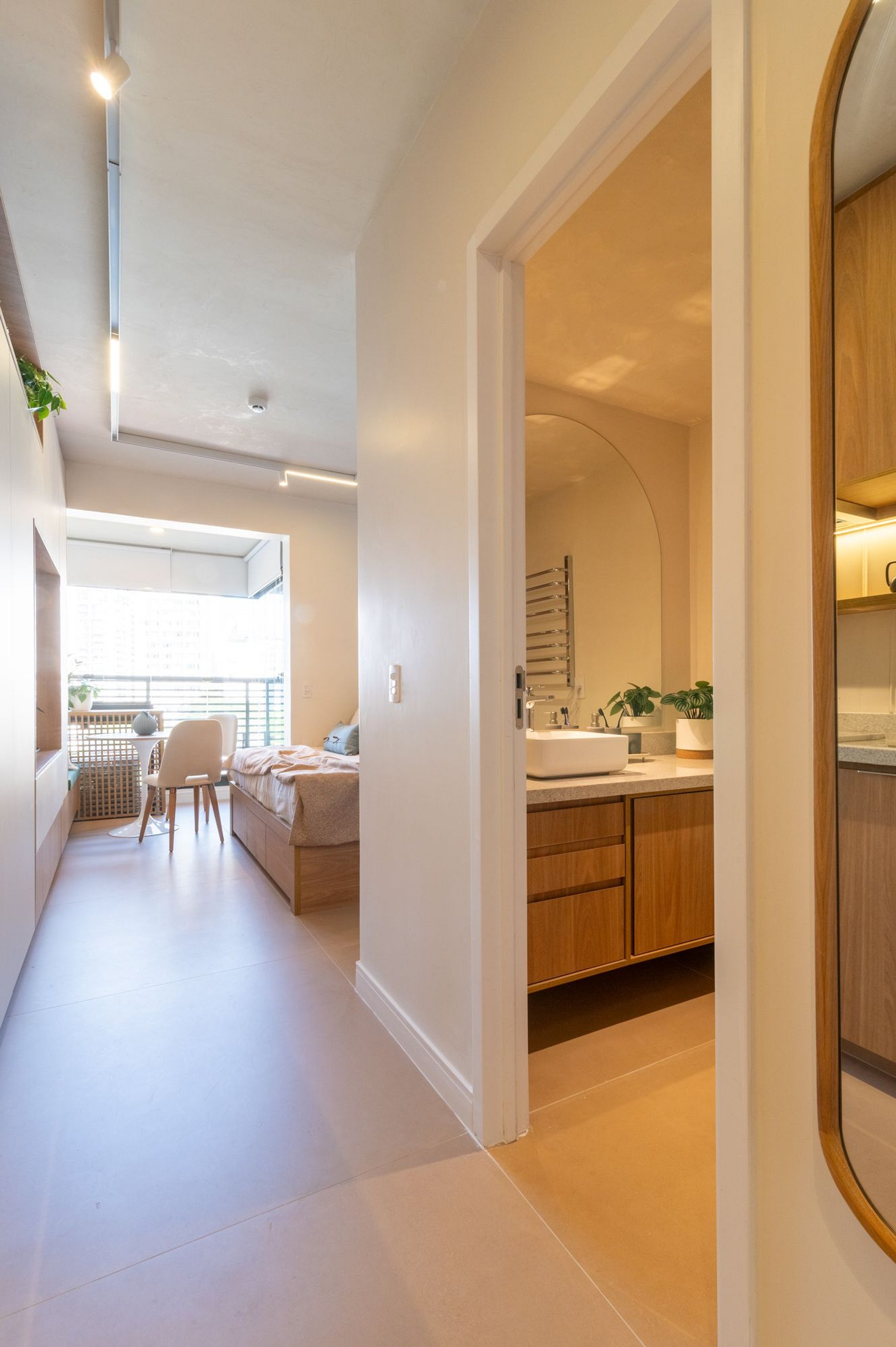 O apartamento está localizado no Broklin a poucos passos do metro . O apartamento é moderno, amplo, com decoração em tons de madeira claros e suaves, é riquíssimo em armários e bem iluminado , perfeito para curtas e longas estadias.