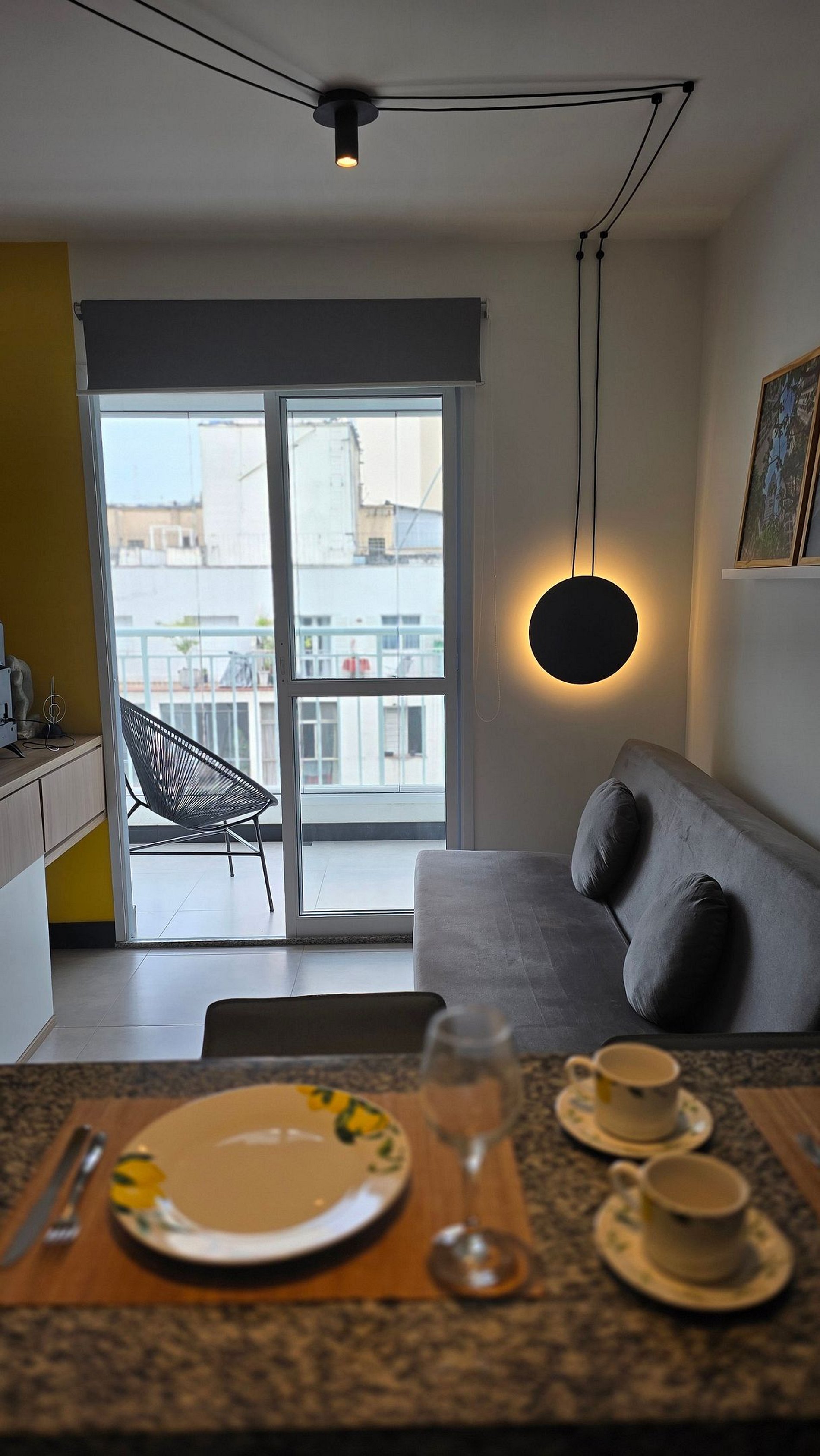 Studio charmoso e confortável , localizado na zona central da capital paulistana , no bairro República, muito bem servido de bares, restaurantes e espaços comerciais. Este apartamento é perfeito para quem quer curtir o centro histórico da cidade, conta com garagem gratuita, piscina, academia e lavanderia. O apartamento é completo, além de espaçoso conta com uma boa sacada , é decorado e elegante em tons de amarelo e preto, repleto de armários, excelente para longas estadias.