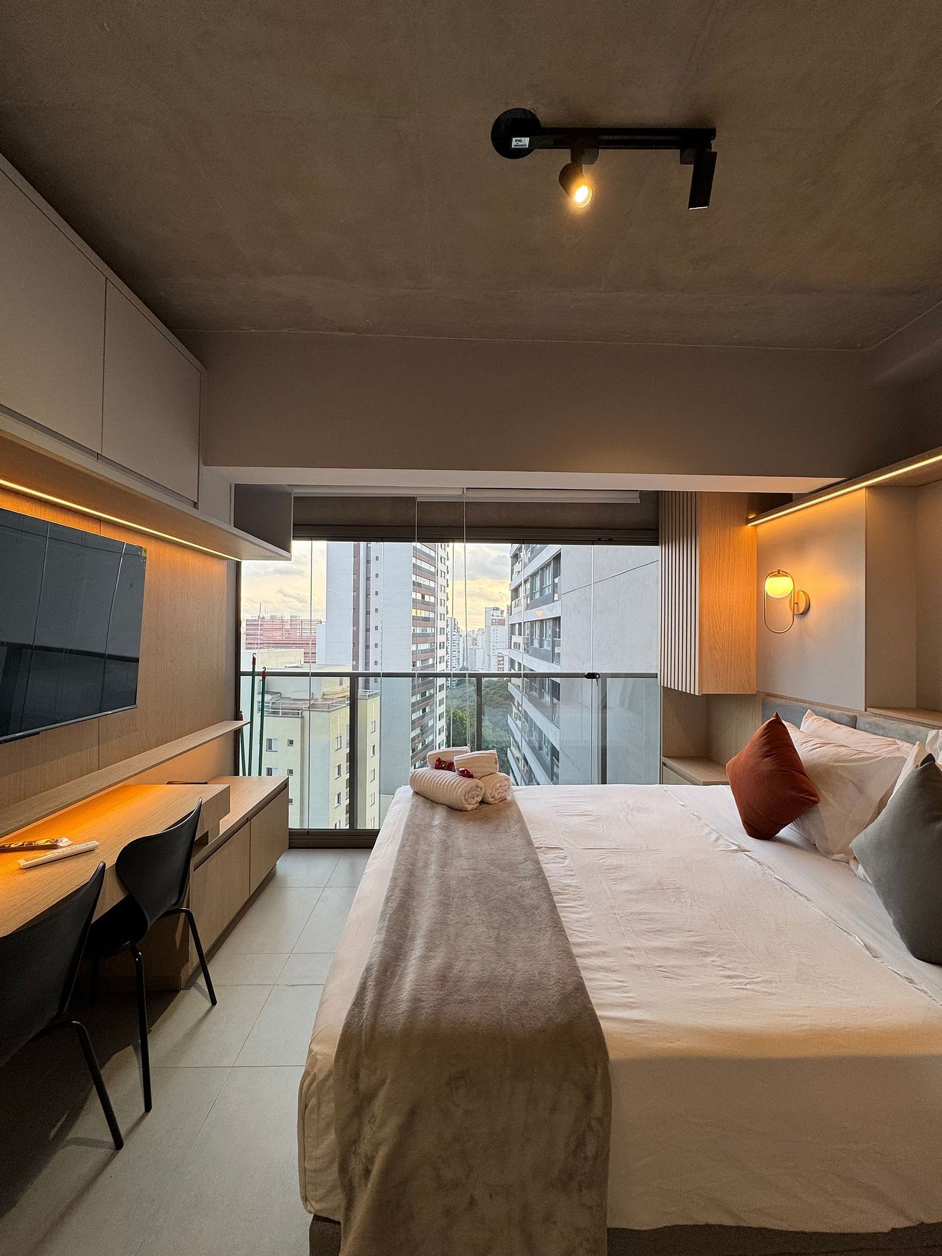 Sinta a energia da Av. Paulista a poucos passos e desfrute da tranquilidade de preparar seu café em um charmoso studio completo e funcional. Pensado para uma estadia inesquecível, seja a trabalho, lazer ou uma pausa na cidade. Nossa localização privilegiada garante deslocamento fácil para qualquer ponto. E para relaxar uma piscina na cobertura com um pôr do sol espetacular e vista da cidade iluminada espera por você.