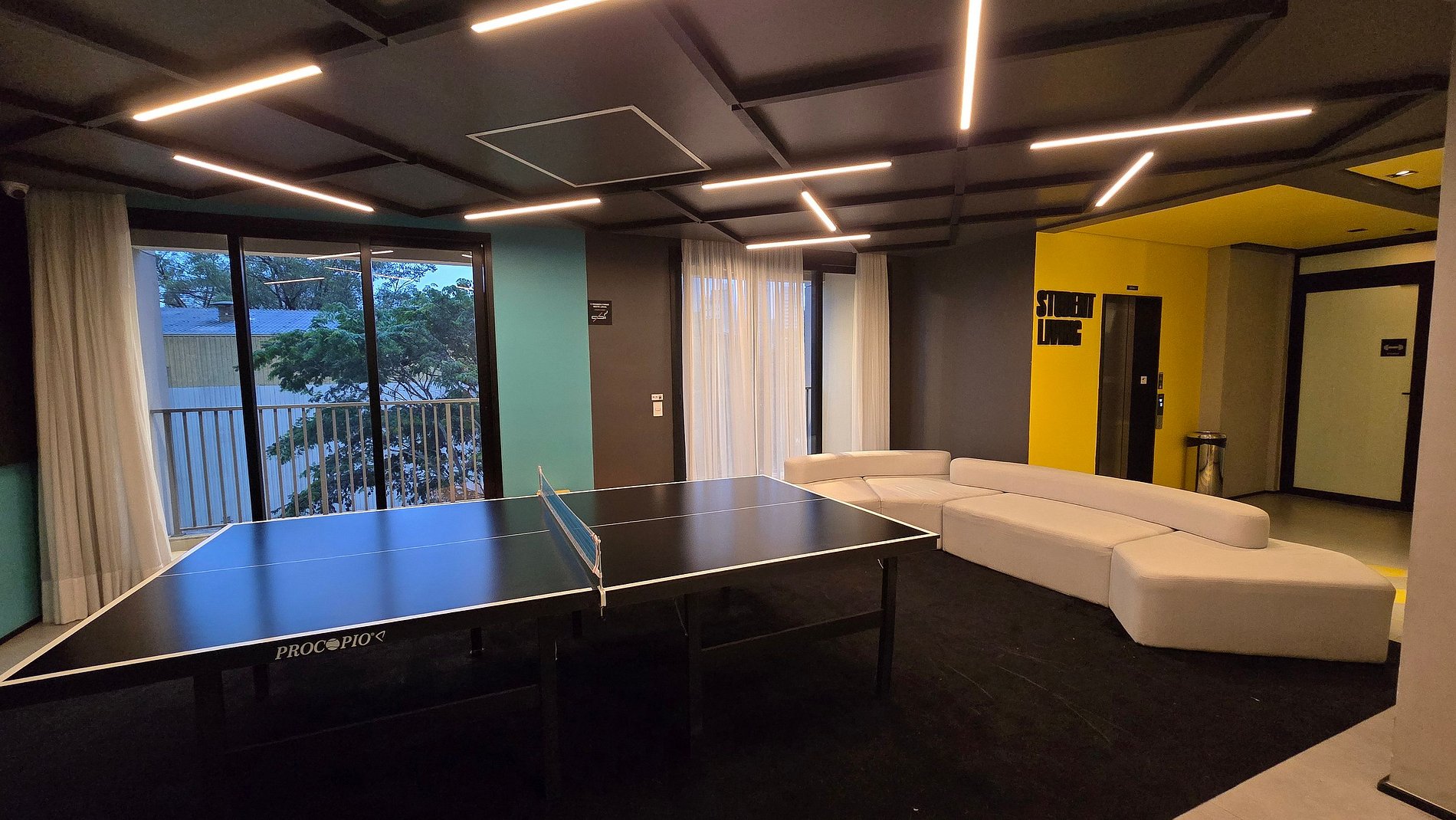 • Espaço de estudos com mesa de Ping Pong e Fliperama