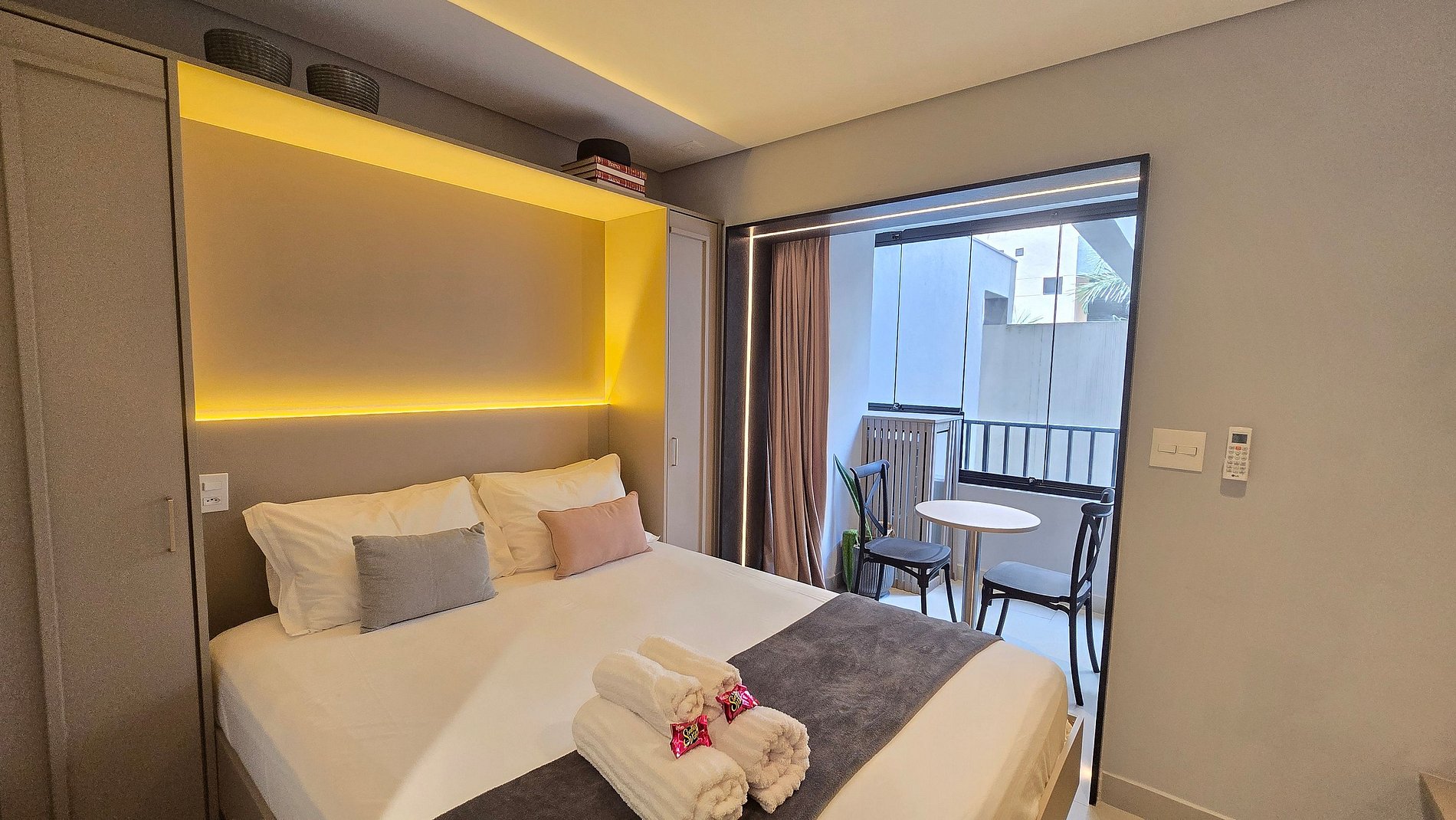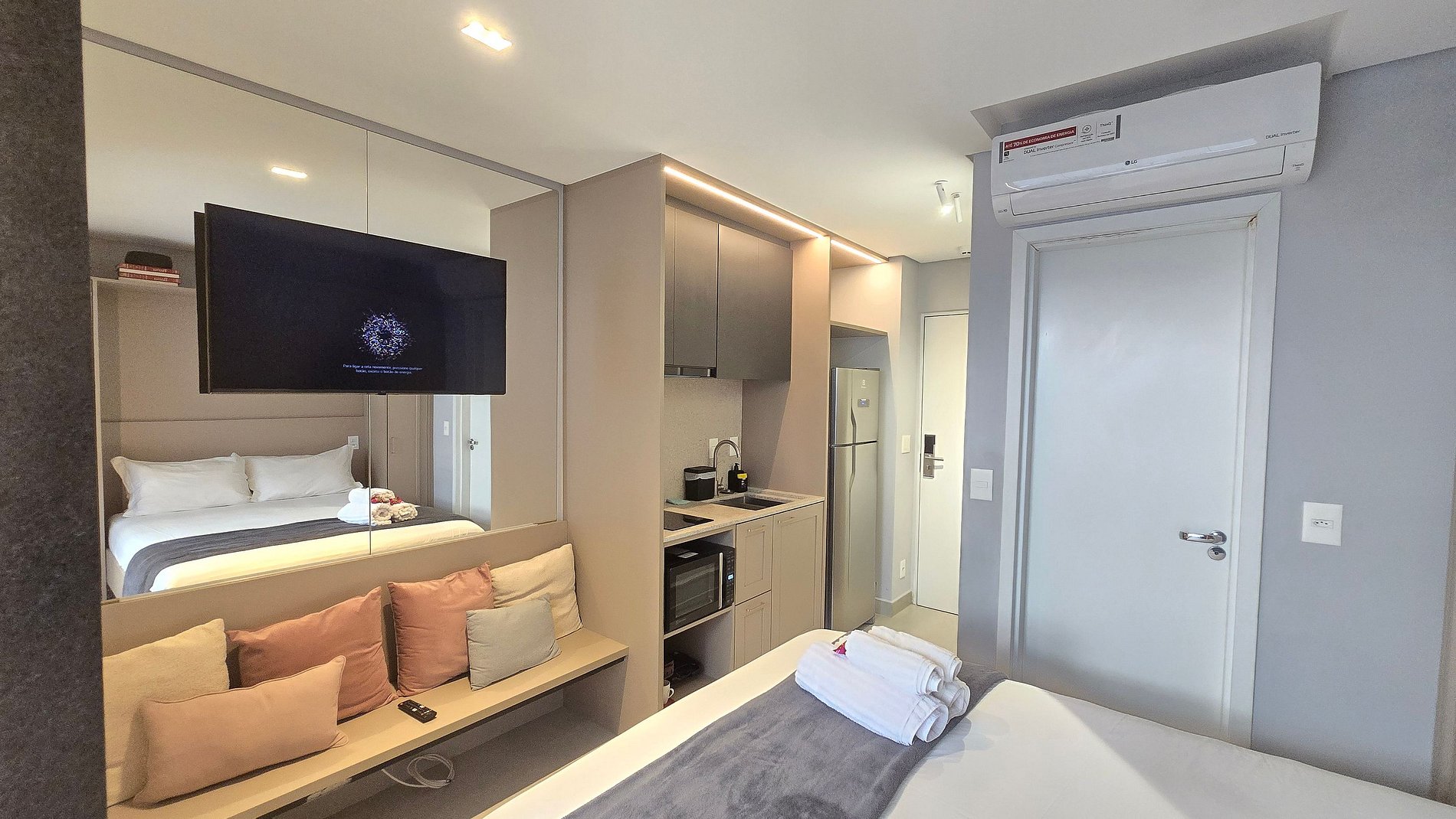 Studio elegante bem iluminado no coração de Pinheiros, no epicentro da vida urbana de São Paulo. Apartamento totalmente equipado para uma estadia confortável, possui, ar-condicionado, Smart TV, Wi-Fi, Geladeira, cama Casal confortável, cozinha completa com microondas, cooktop e mesa para 2 pessoas. O empreendimento possui academia, lavanderia, minimercado e salão de jogos. A localização é estupenda são mais de 40 bares e restaurantes num raio de 1 km e 200m da estação Oscar Freire