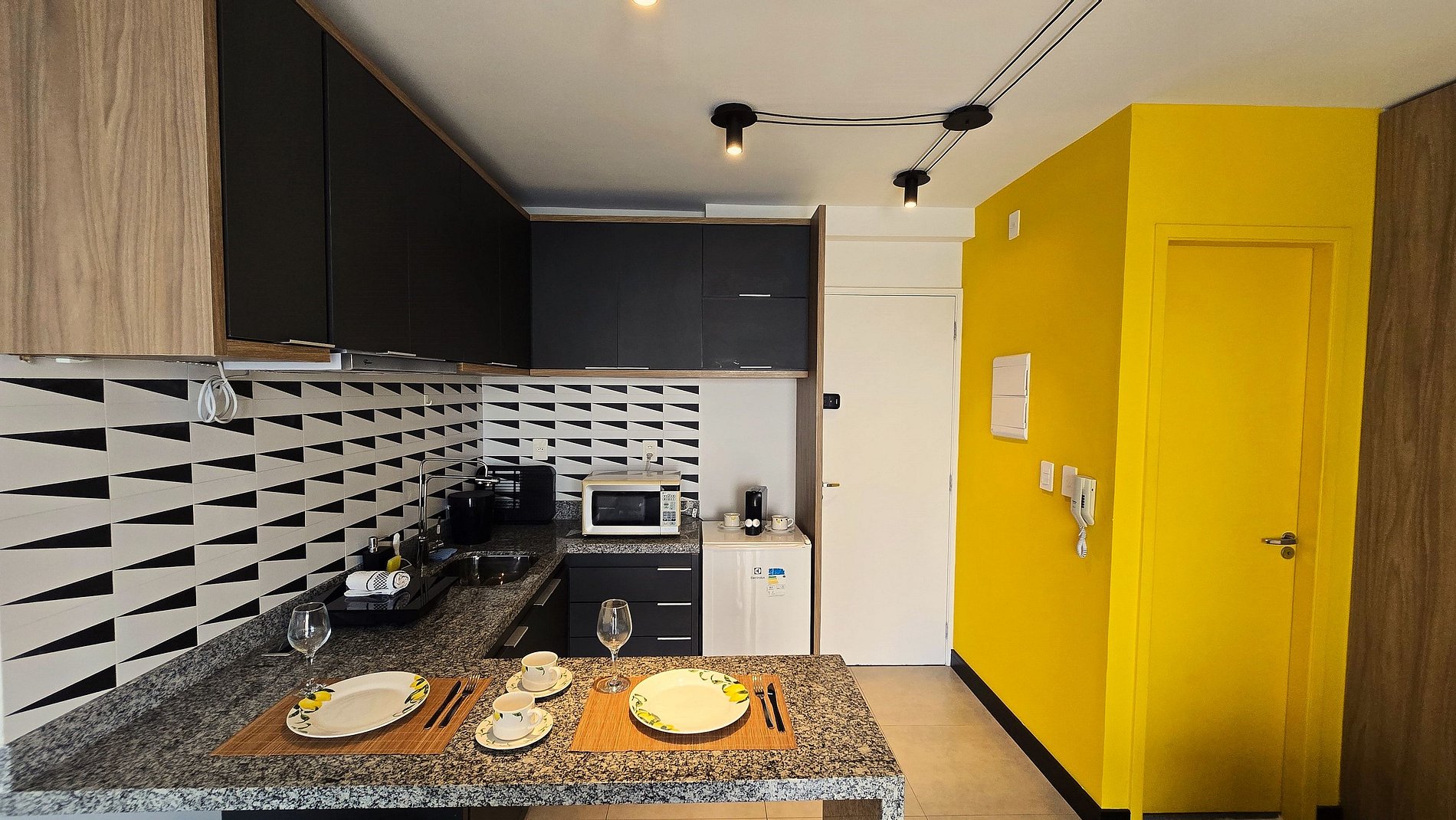 O apartamento está localizado na República a poucos passos do metro republica . O apartamento é aconchegante, amplo, com decoração em em amarelo e preto, com tamanho maior do que a maioria dos estúdios da cidade, perfeito para curtas e longas estadias. Perfeito para desfrutar do centro histórico de SP.