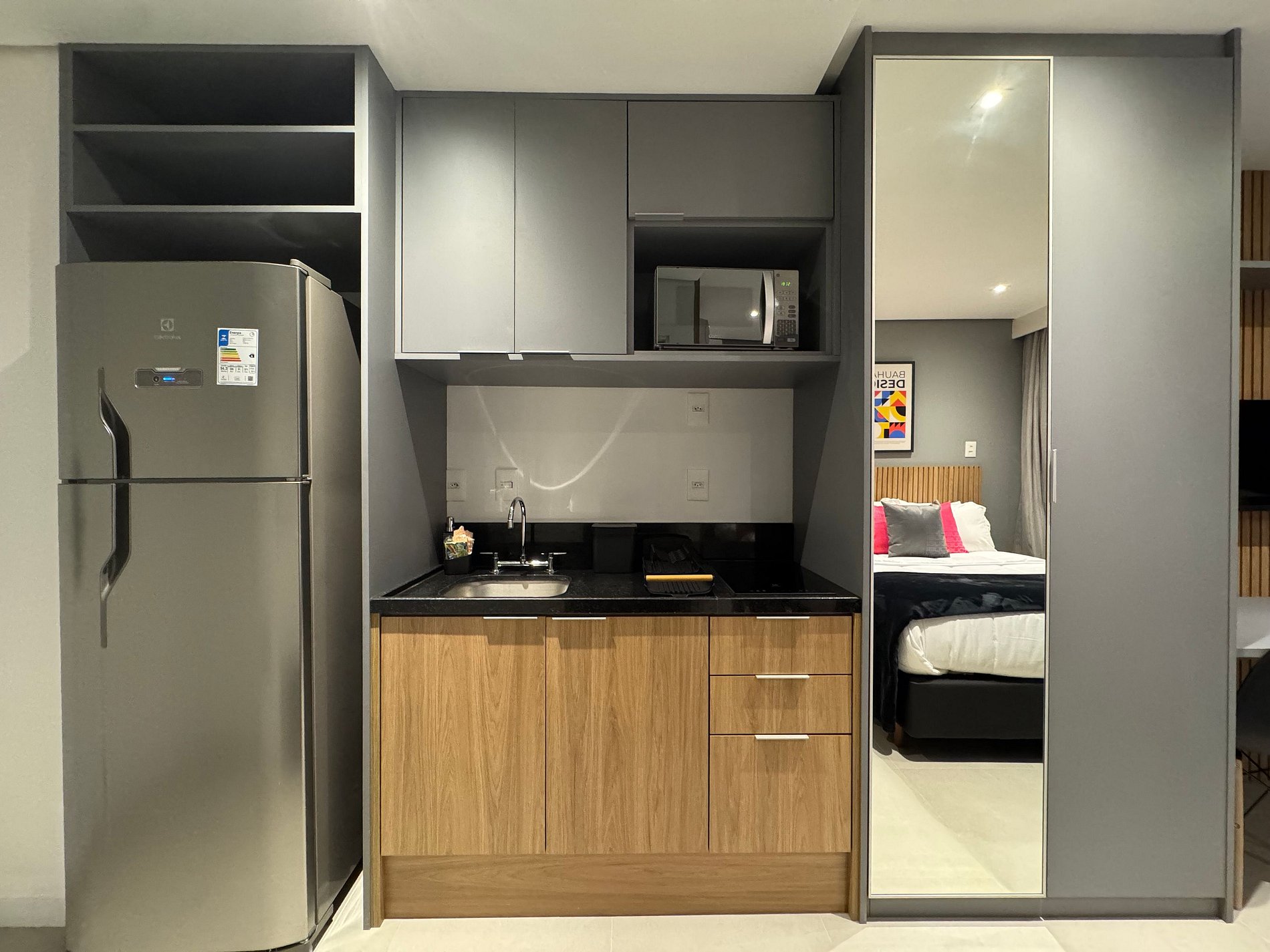 Studio charmoso e bem iluminado no coração de Pinheiros, no epicentro da vida urbana de São Paulo. Apartamento totalmente equipado para uma estadia confortável e tranquila, possui, ar-condicionado, Smart TV, Wi-Fi, Geladeira, cama Casal confortável, cozinha completa com microondas, cooktop. O empreendimento possui academia, lavanderia, minimercado e salão de jogos. A localização é estupenda são mais de 40 bares e restaurantes num raio de 1 km e 200m da estação Oscar Freire.