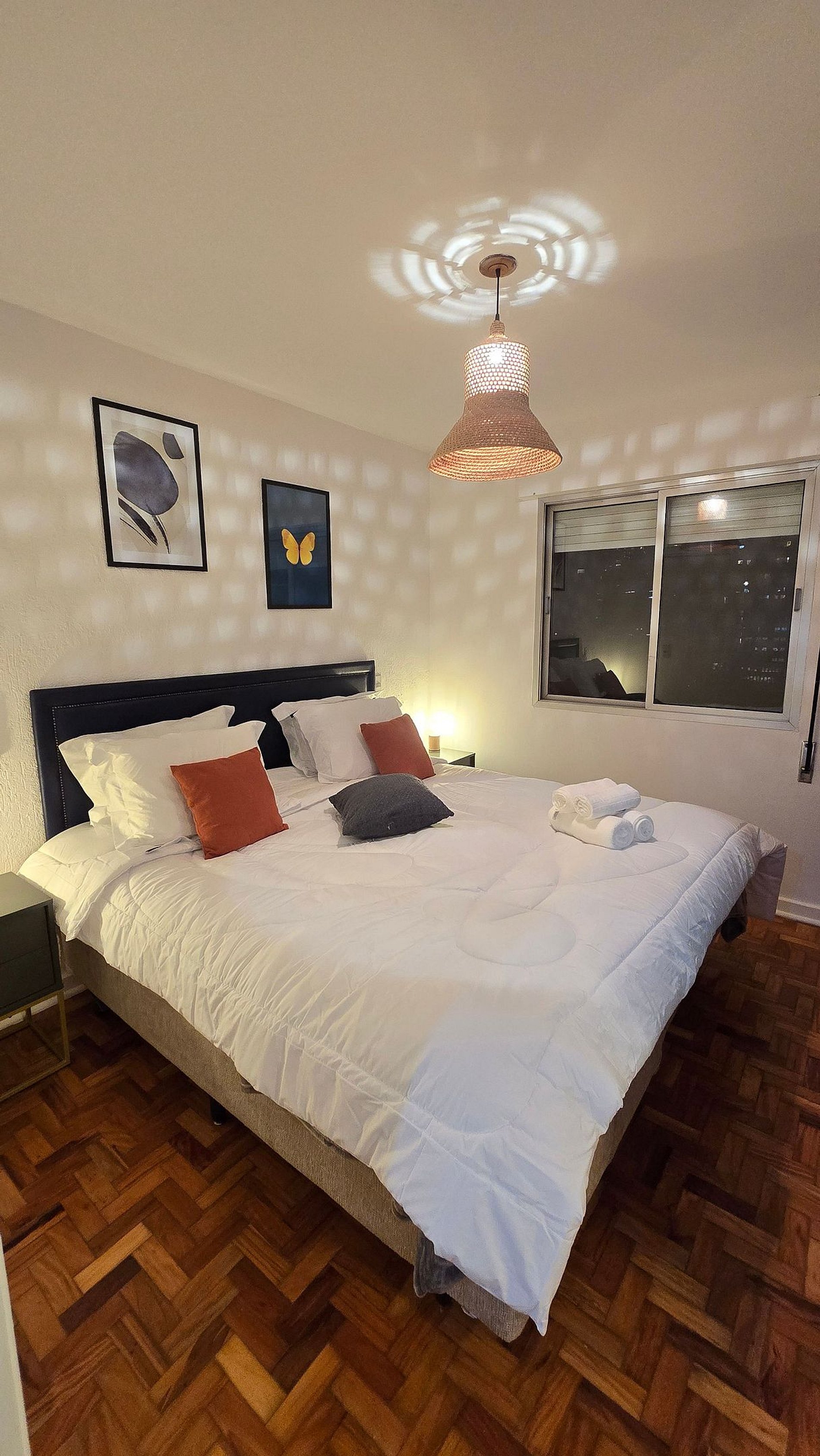 •Suíte com CAMA KING size com quatro travesseiros e enxoval 100 % algodão 200 fios;