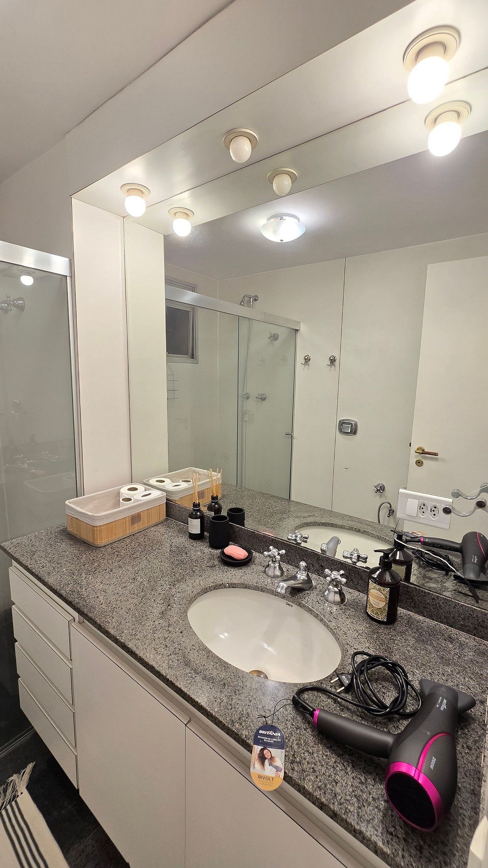Pensando em sua conveniência, disponibilizamos um secador de cabelo e um ferro de passar. Por favor, note que a voltagem da unidade é de 110W. A unidade ainda conta com tabua de passar roupa.