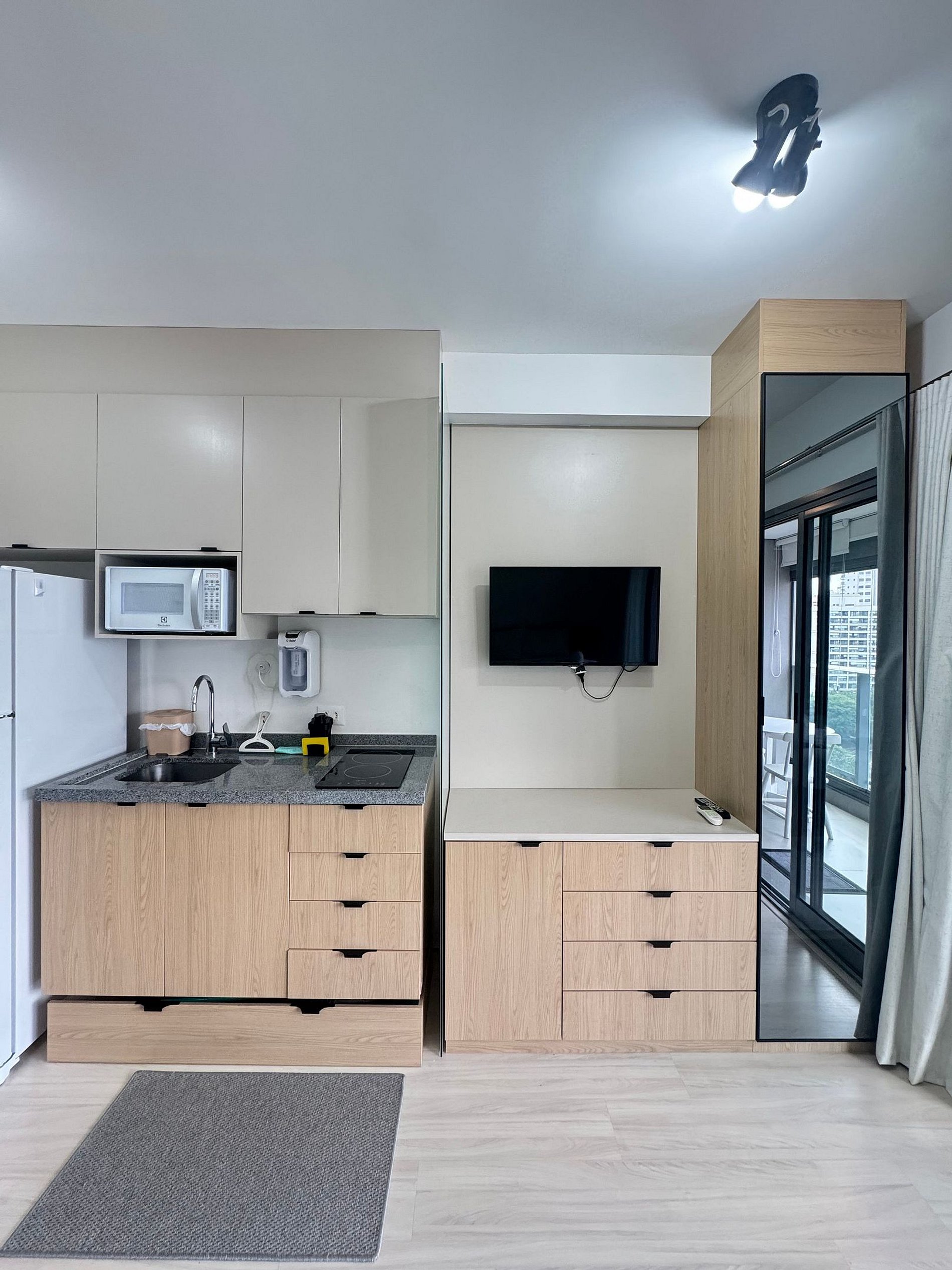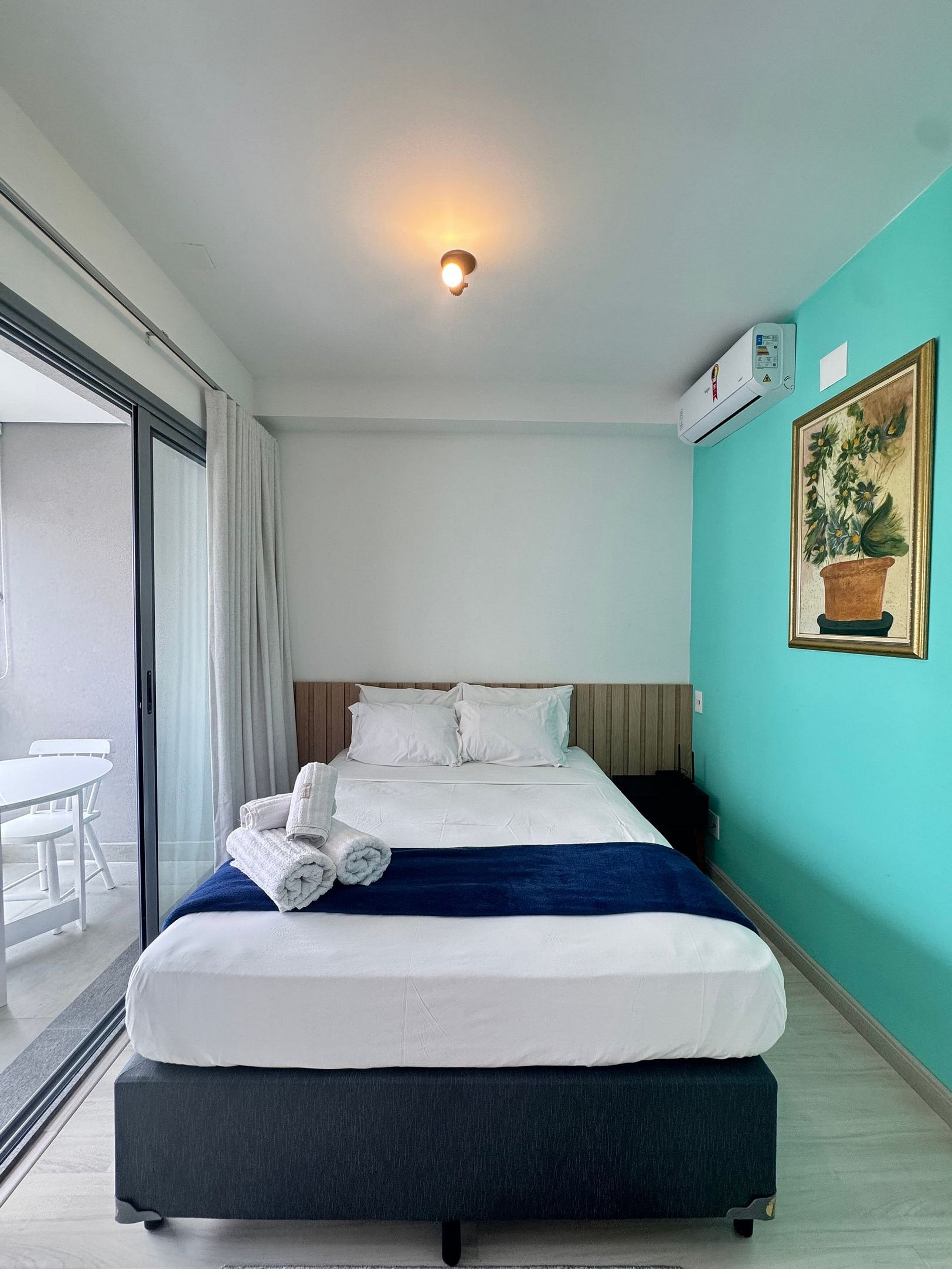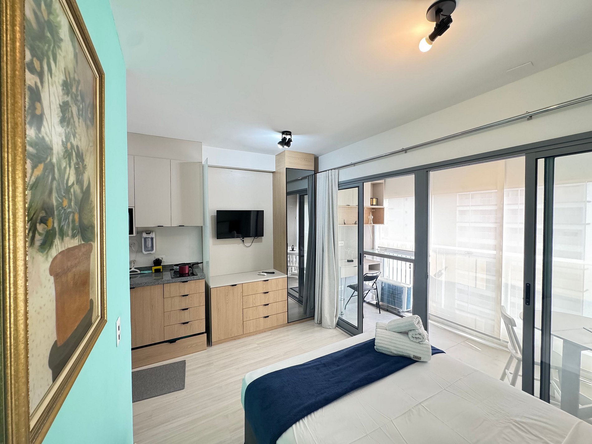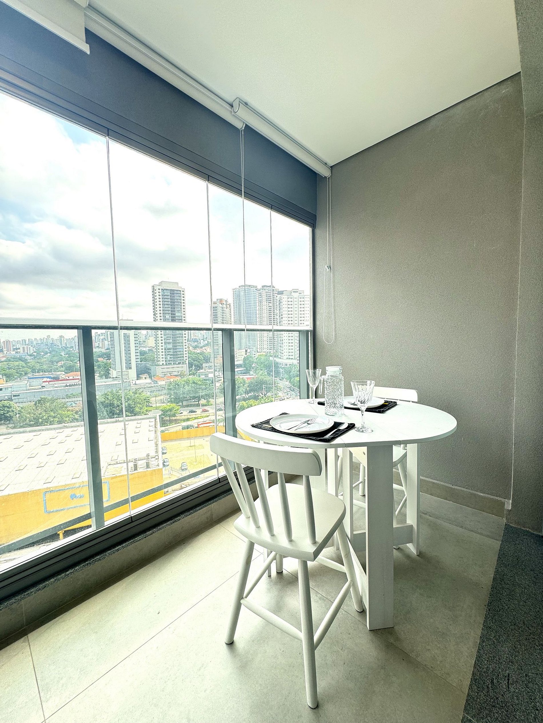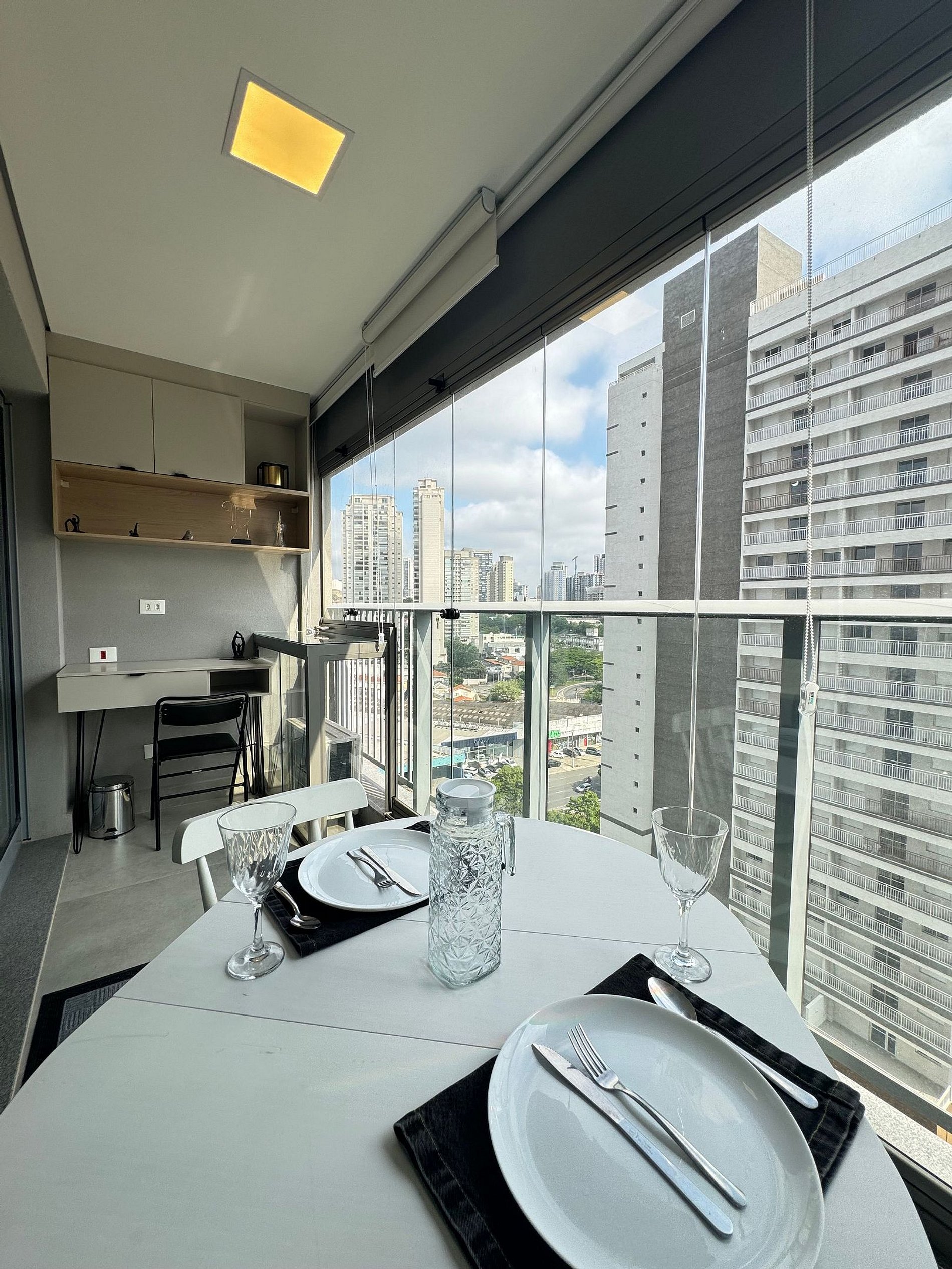 Studio Novo, com todas as praticidades necessárias para uma estadia confortável e segura. O empreendimento conta com piscina no terraço, academia com variados equipamentos e uma grande variedade de lojas anexadas ao prédio. O apartamento esta preparado para atender estadias curtas e longas e dispõe de TV Smart , cozinha completa, mesa para 2 pessoas, espaço exclusivo de trabalho, ar condicionado, roupa de cama e banho de qualidade. O empreendimento fica a poucos passos do metro santos imigrantes