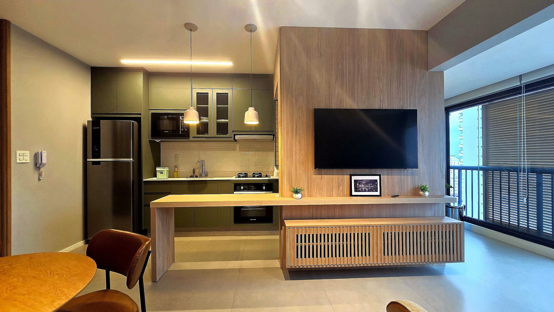 • TV de 50 polegadas na sala e TV de 43 polegadas no quarto.