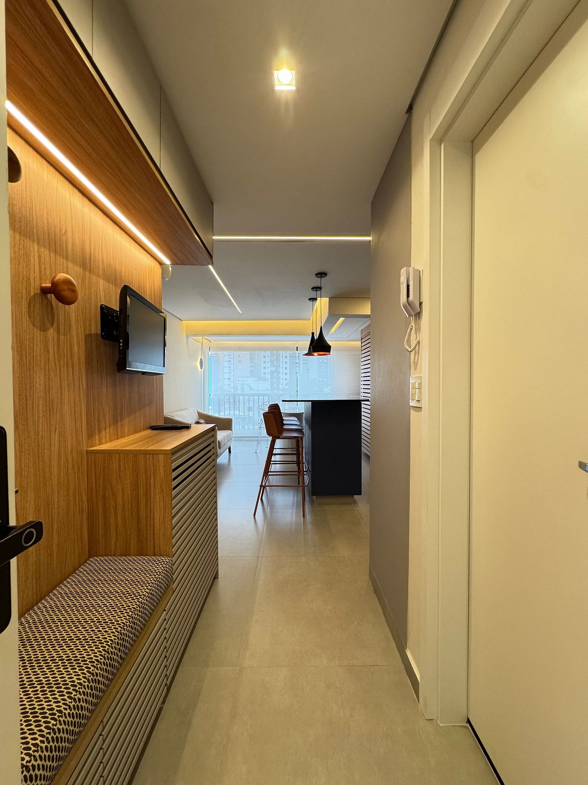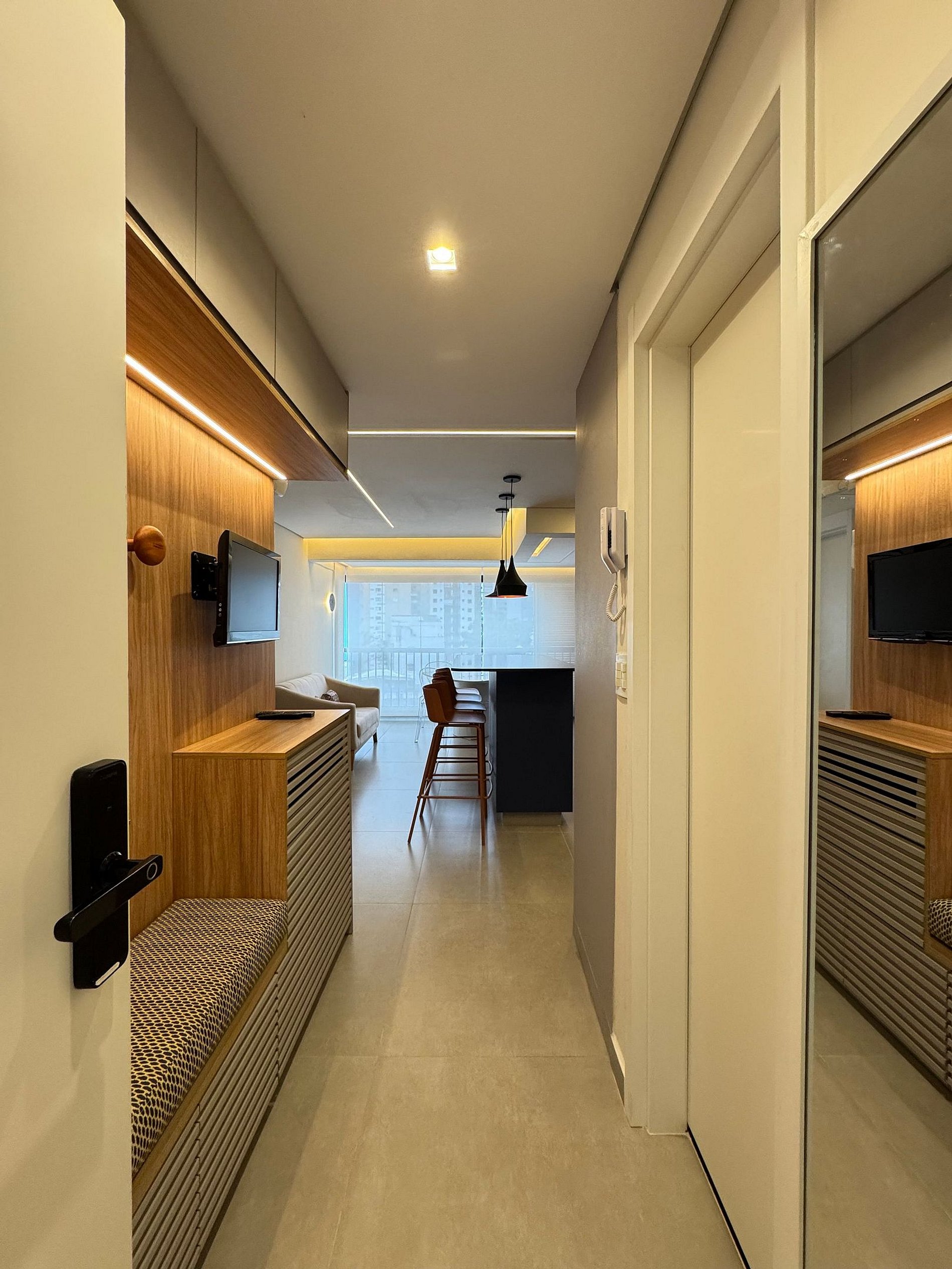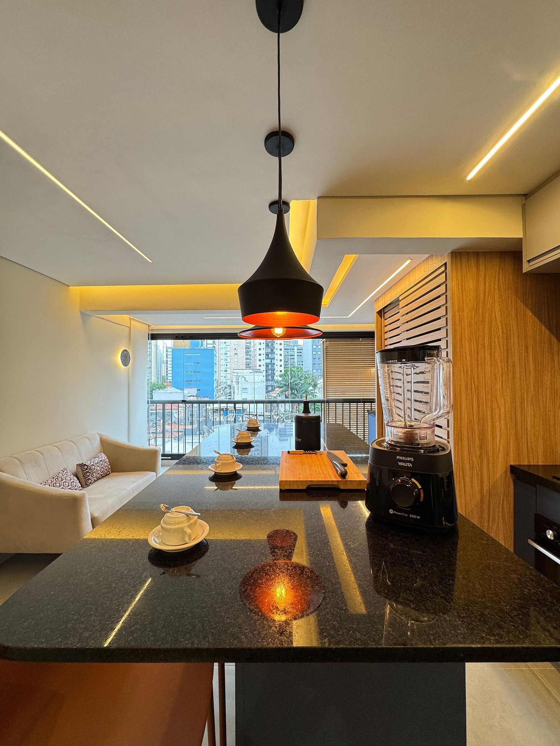Belíssimo apartamento de 44m2 ! Amplo, confortável e elegante, localizado no coração de São Paulo, a Vila Mariana, bairro onde se localiza o Ibirapuera. O Apartamento é bem iluminado, silencioso, riquíssimo em armários, seguro e bem decorado. Conta com 1 suíte, sala grande, lavabo, maquina de lavar, lava louças, TV Smart 50, Internet, lençóis de qualidade, cozinha americana completa e ampla, mesa para 4 pessoas e ar condicionado na sala. Perfeito para Longas estadias, no coração de São Paulo.