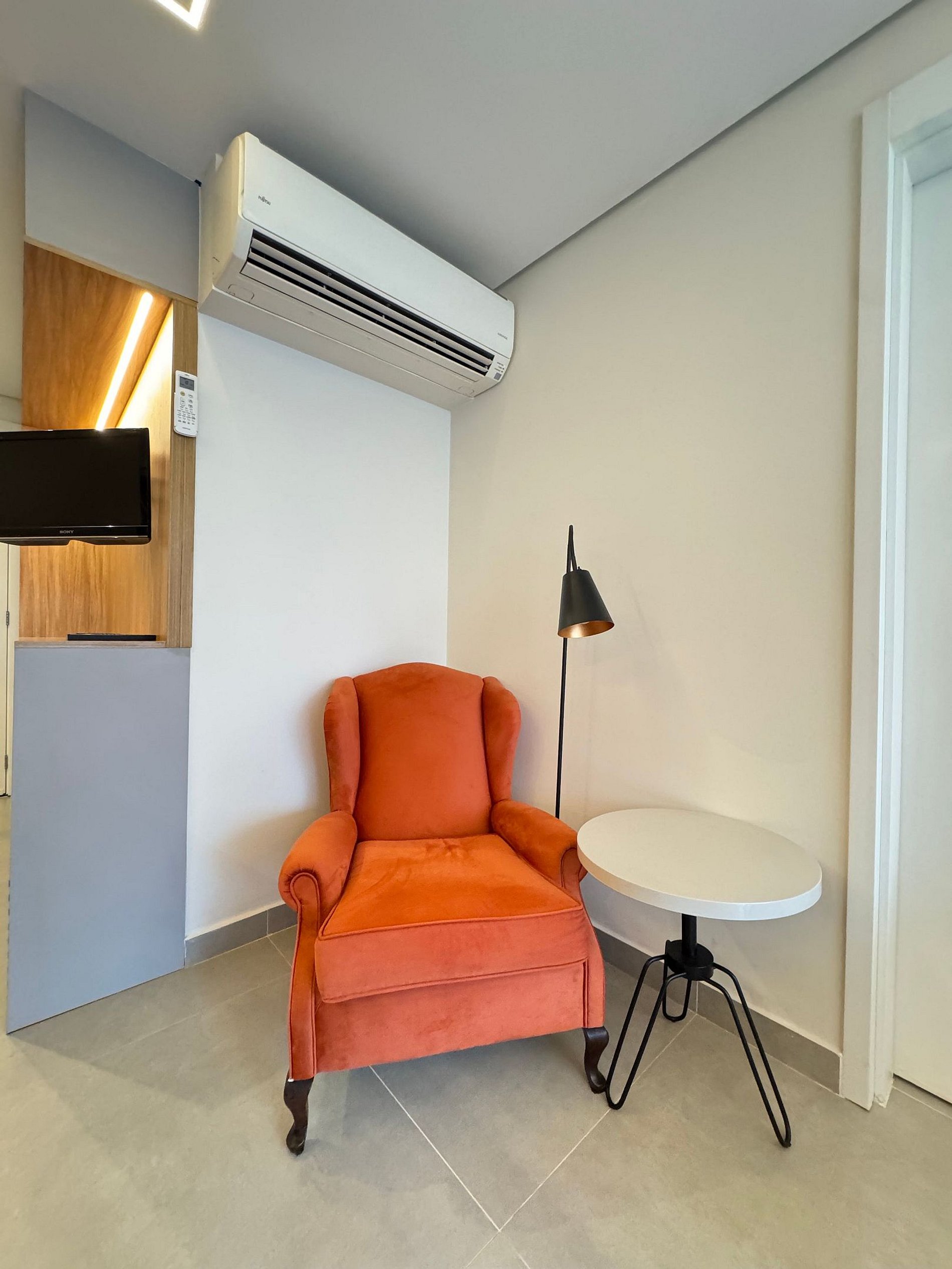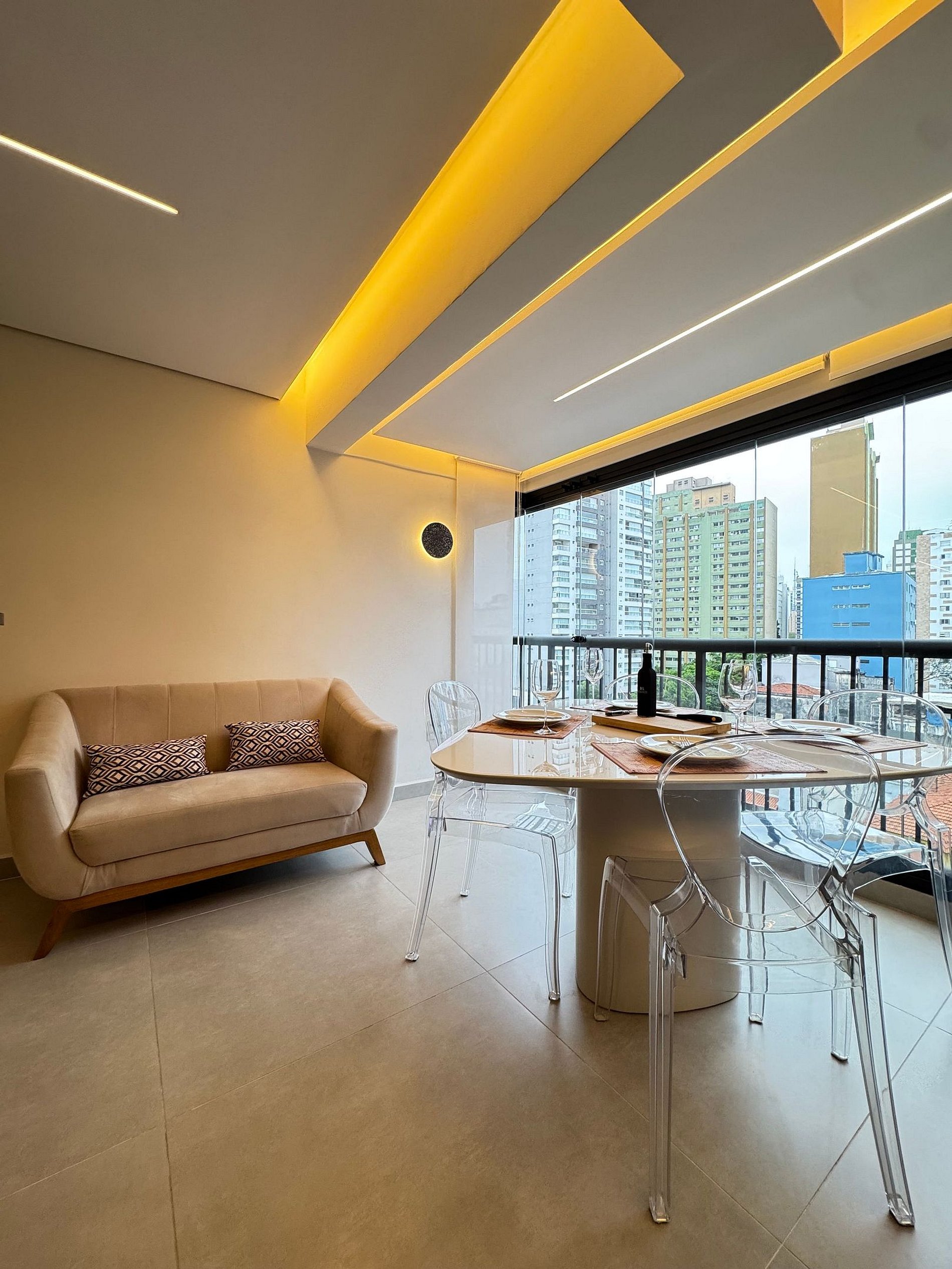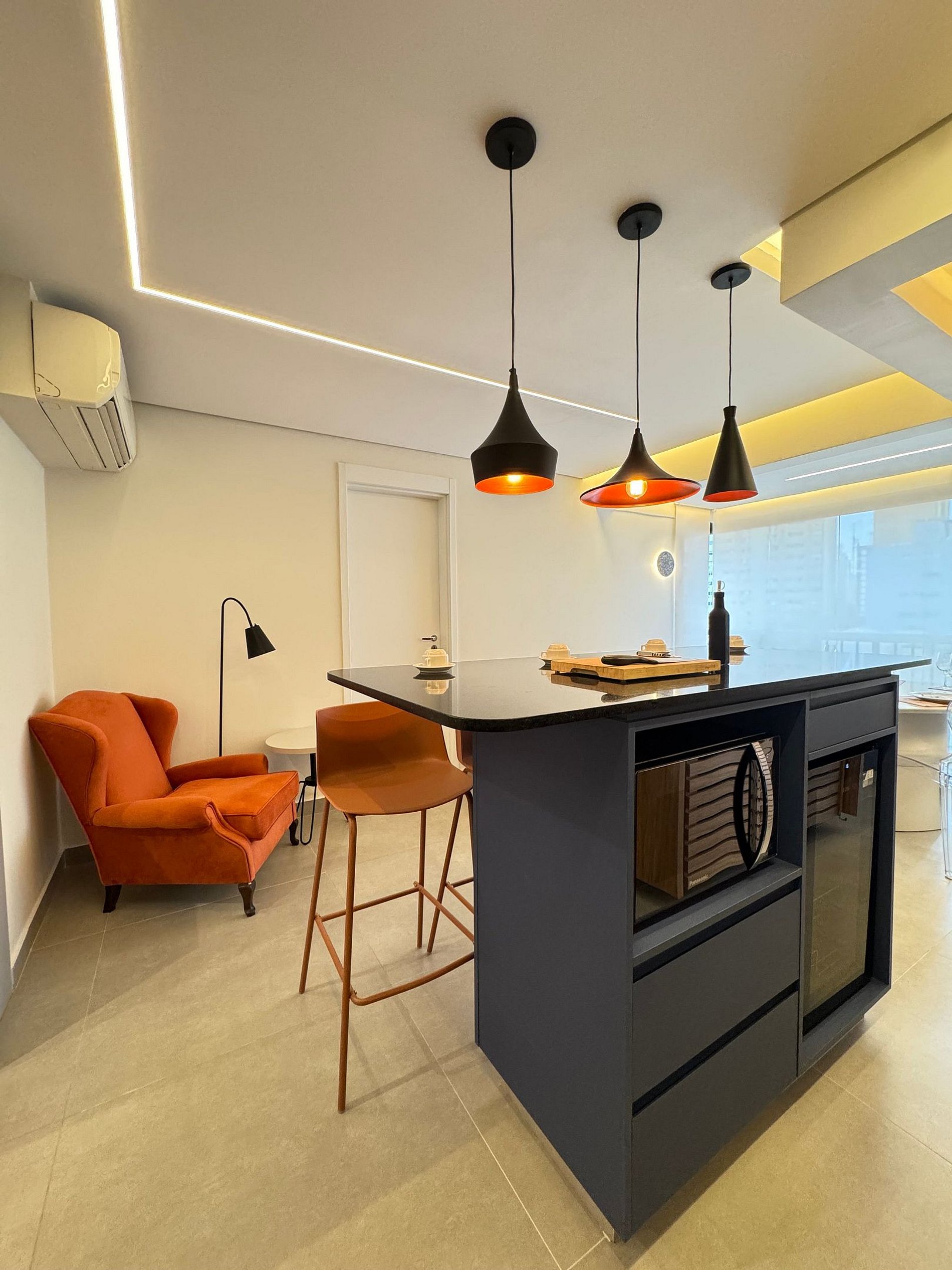 Belíssimo apartamento de 44m2 ! Amplo, confortável e elegante, localizado no coração de São Paulo, a Vila Mariana, bairro onde se localiza o Ibirapuera. O Apartamento é bem iluminado, silencioso, riquíssimo em armários, seguro e bem decorado. Conta com 1 suíte, sala grande, lavabo, maquina de lavar, lava louças, TV Smart 50, Internet, lençóis de qualidade, cozinha americana completa e ampla, mesa para 4 pessoas e ar condicionado na sala. Perfeito para Longas estadias, no coração de São Paulo.