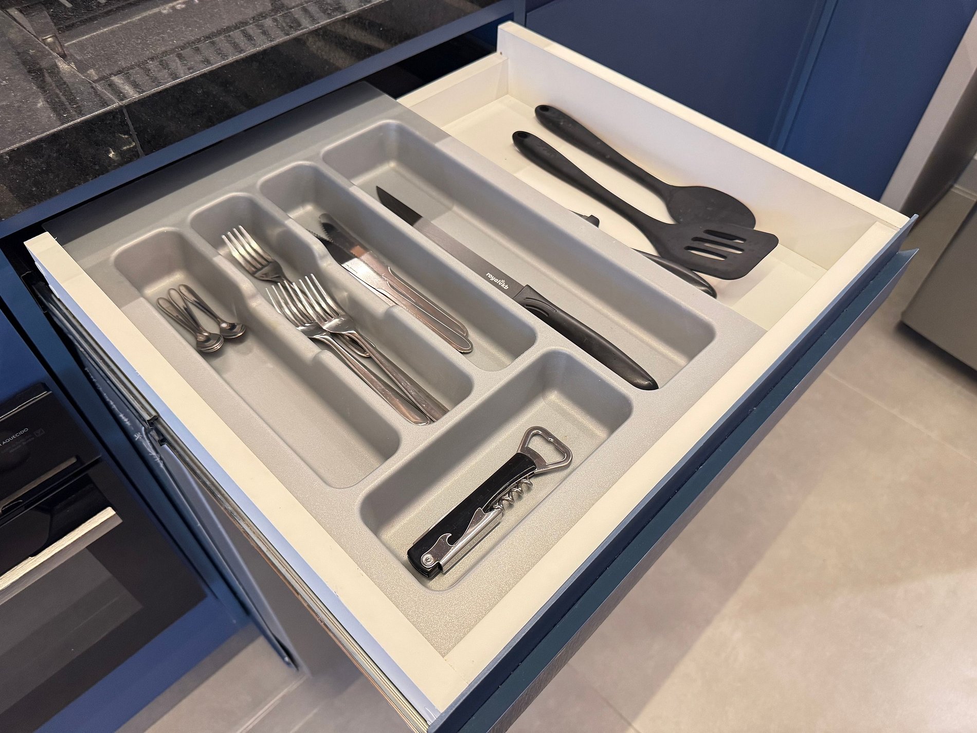• Cozinha completa equipada com Geladeira grande adequada para longas estadias , fogão 4 bocas à gás , micro-ondas, liquidificador, máquina de café, sanduicheira, panelas e utensílios de qualidade.