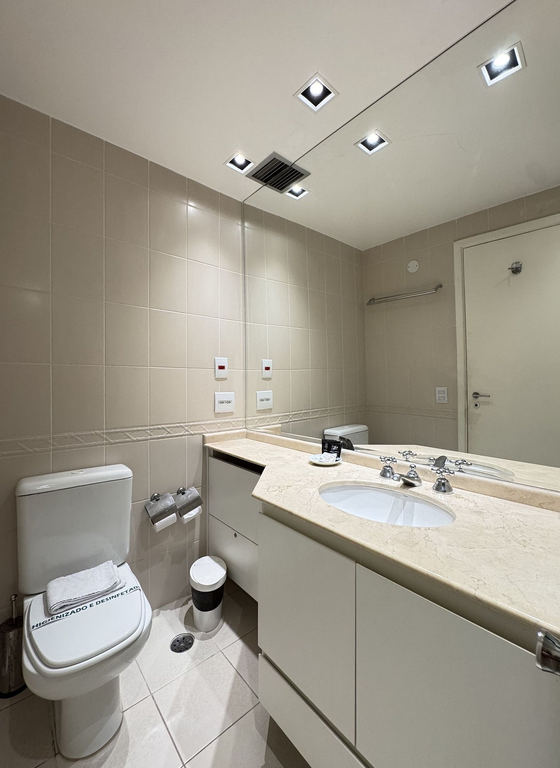 Pensando em sua conveniência, disponibilizamos um secador de cabelo e um ferro de passar tipo vaporizador. Por favor, note que a voltagem da unidade é de 110W.