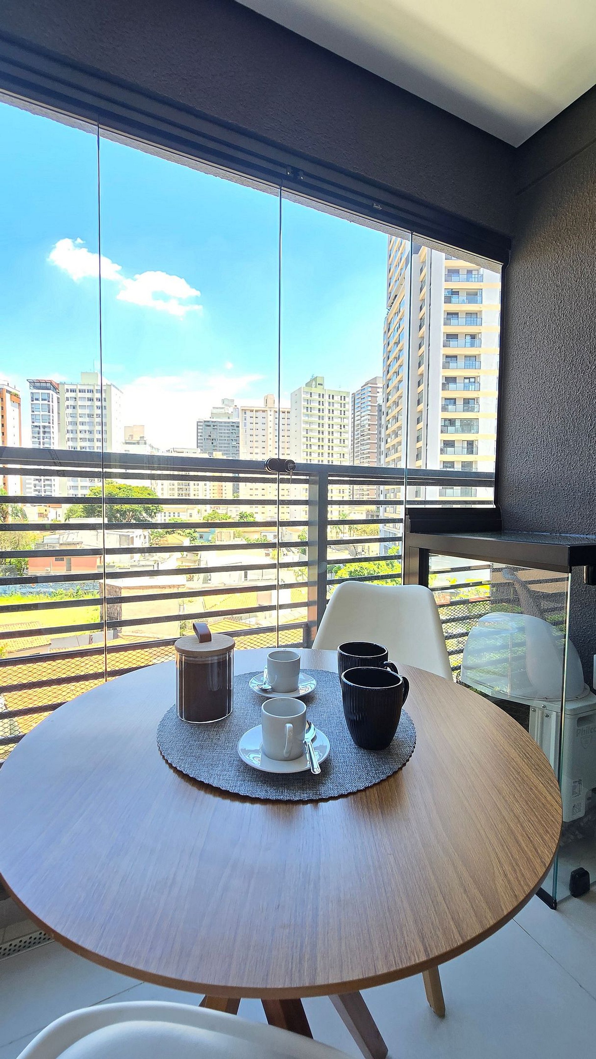 • Área de estar com mesa para duas pessoas.