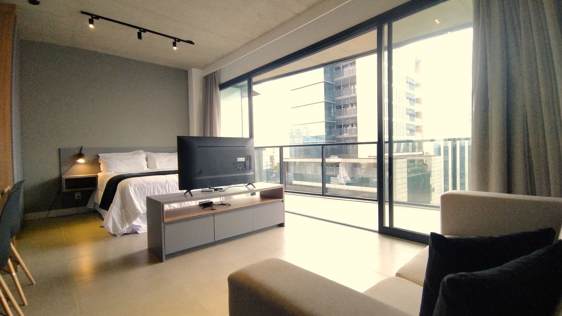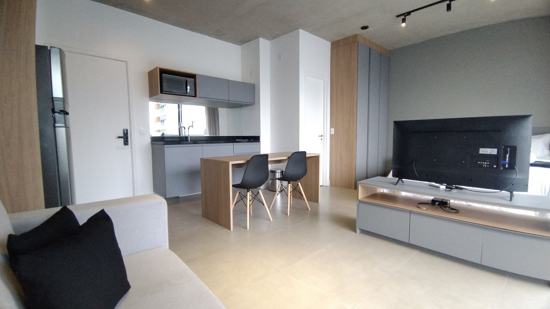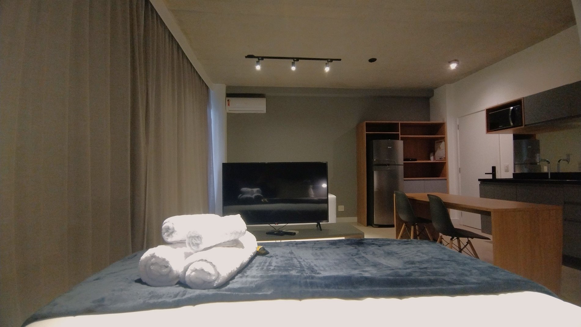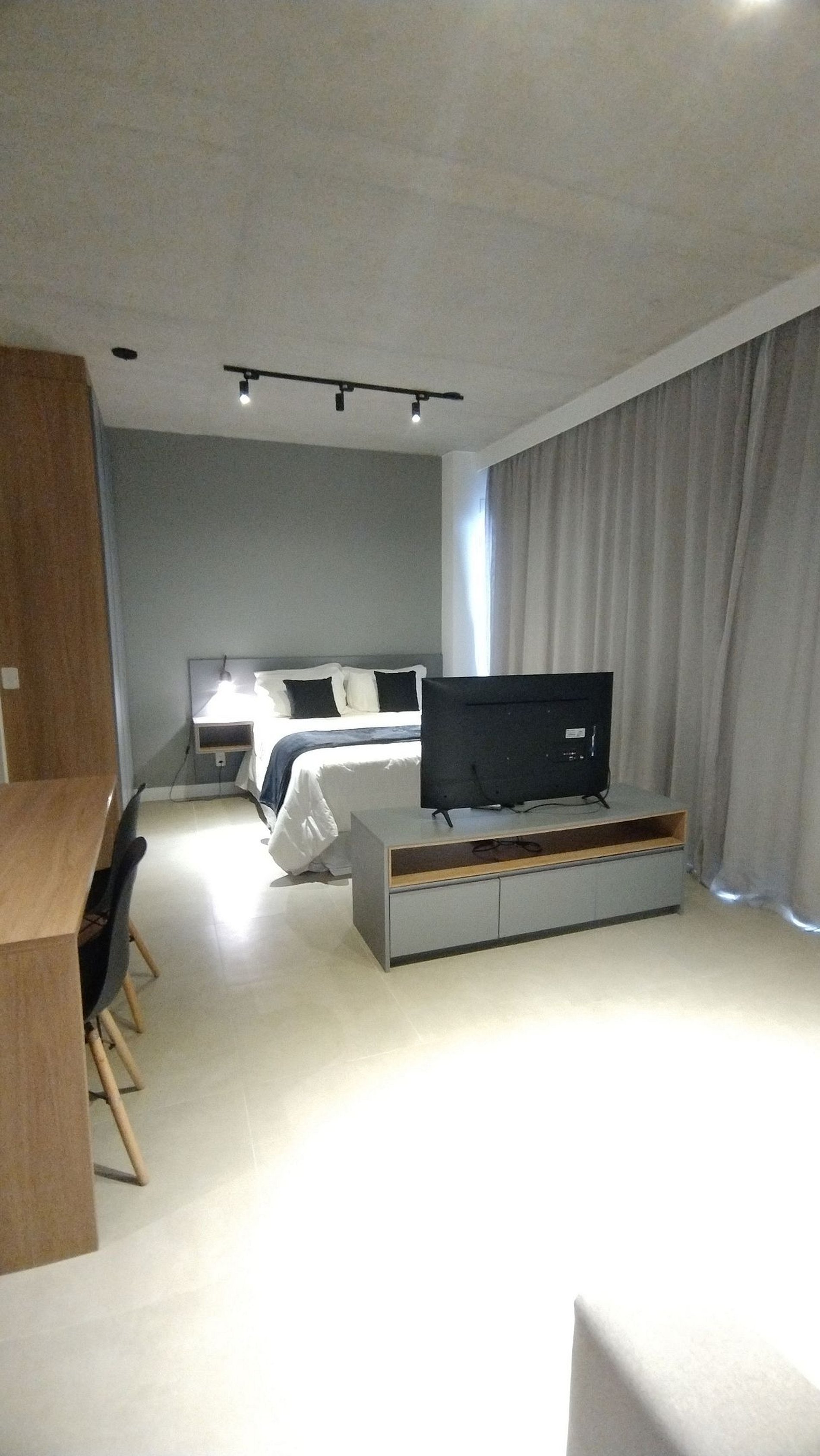 O apartamento está localizado na Vila Olímpia a poucos passos da Faria Lima e da Avenida JK. O apartamento é moderno, amplo e com decoração em tons de azul e madeira, é um espaço bem iluminado pela luz natural e pelas grandes janelas de sua ampla sacada. Cortinas Black out em toda sua extensão garantem um bom sono e privacidade.