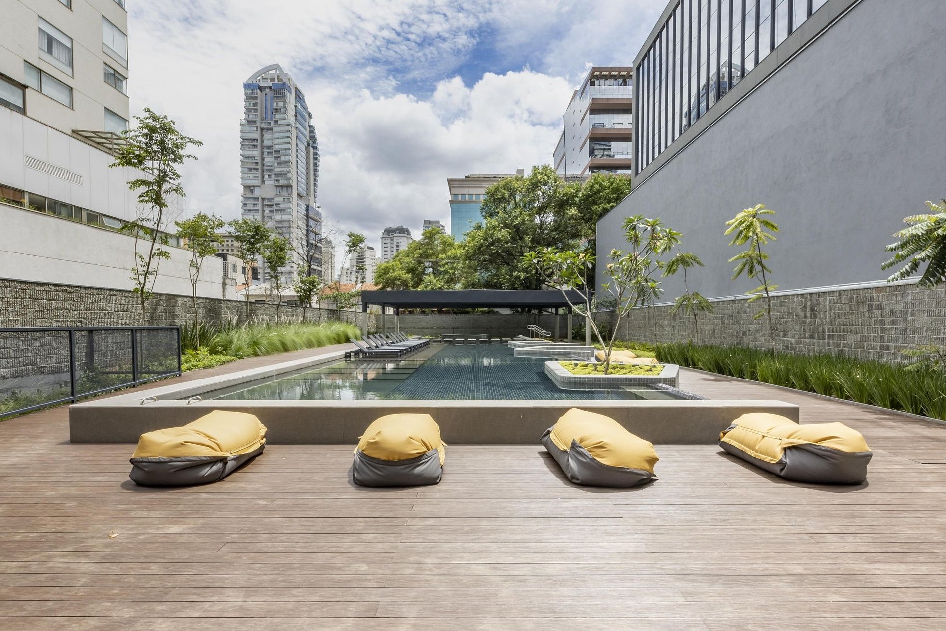 • Raia Interna de 20 metros para prática de natação e piscina na área externa com espreguiçadeiras.