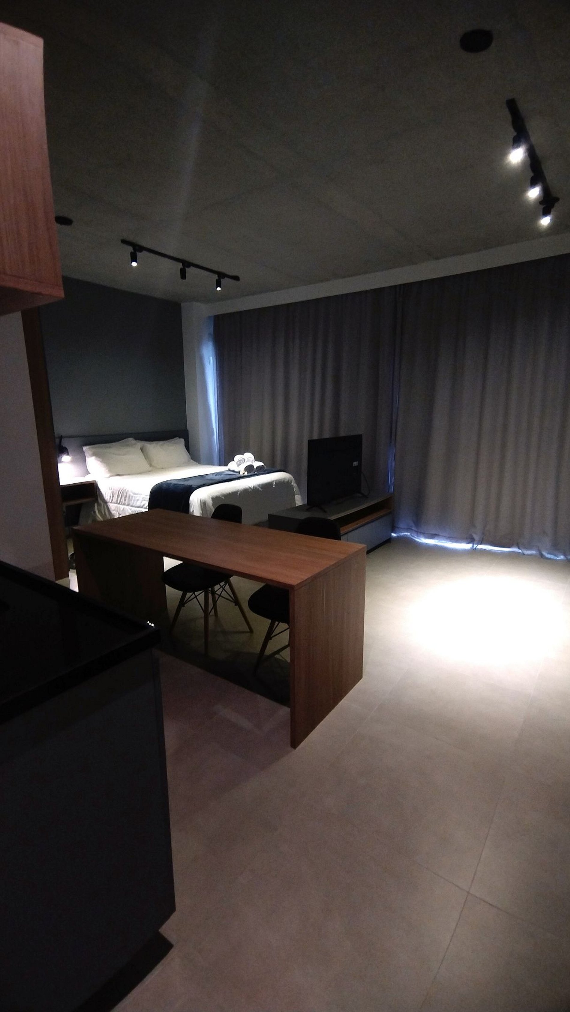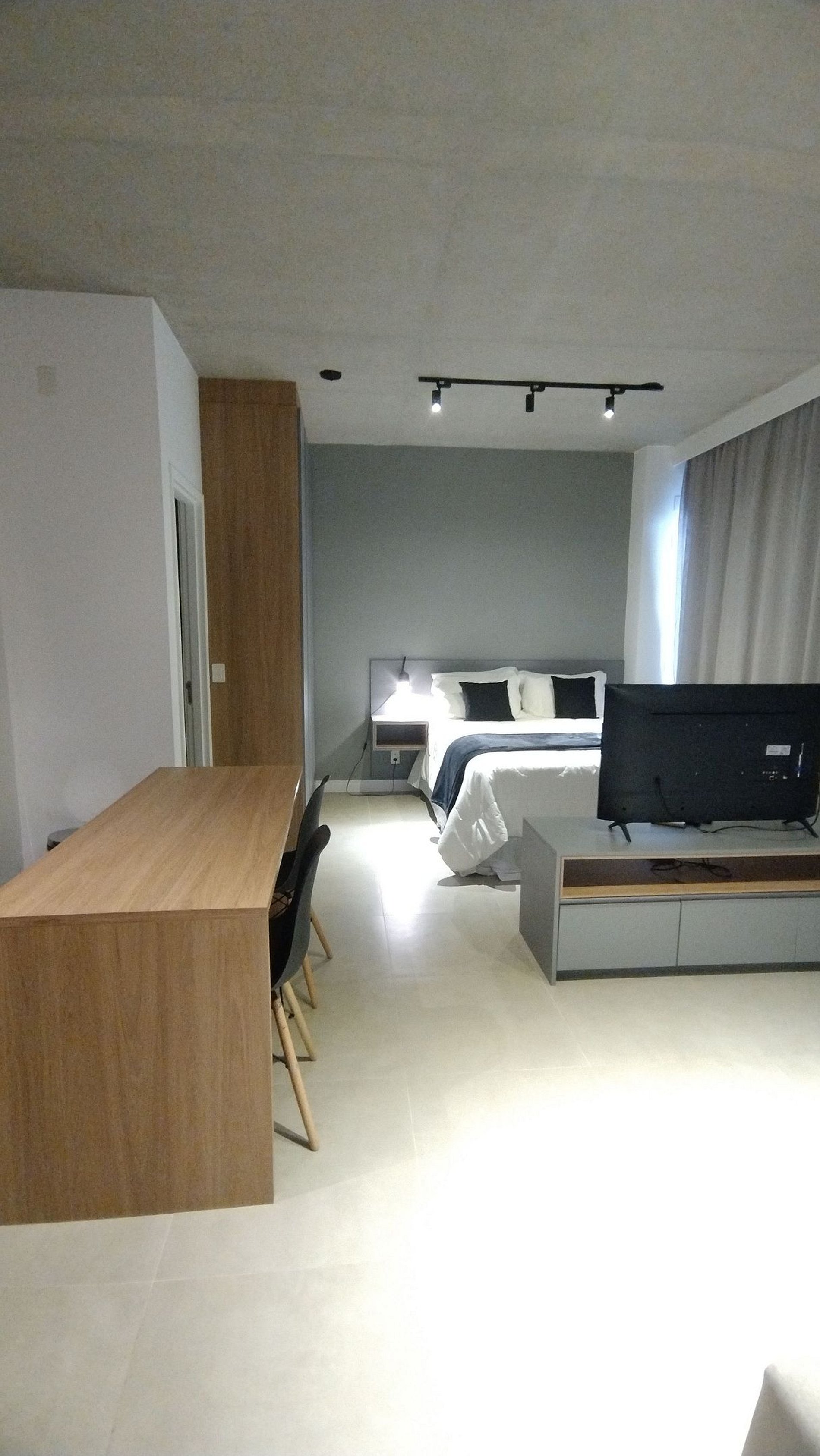 O apartamento está localizado na Vila Olímpia a poucos passos da Faria Lima e da Avenida JK. O apartamento é moderno, amplo e com decoração em tons de azul e madeira, é um espaço bem iluminado pela luz natural e pelas grandes janelas de sua ampla sacada. Cortinas Black out em toda sua extensão garantem um bom sono e privacidade.