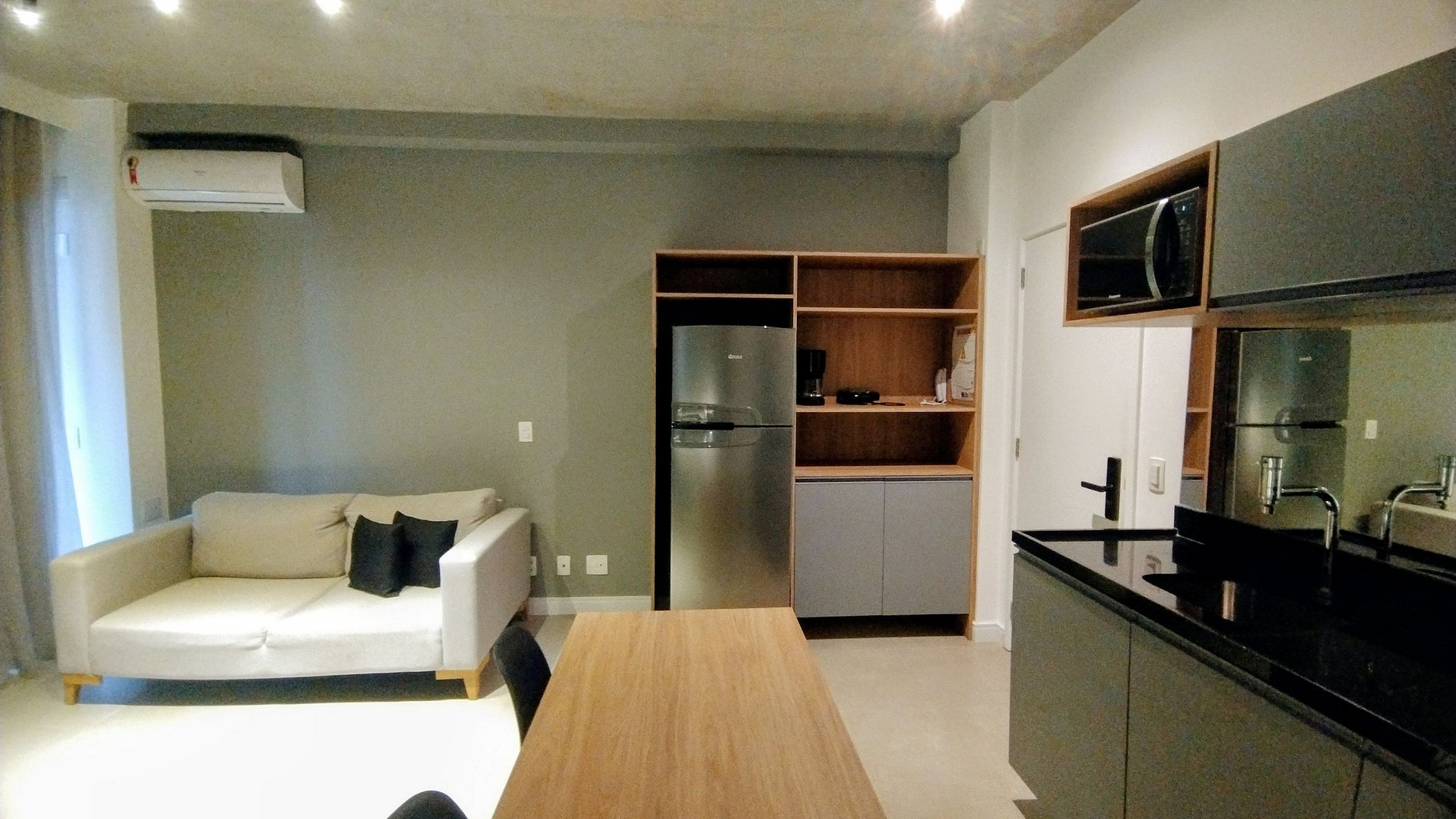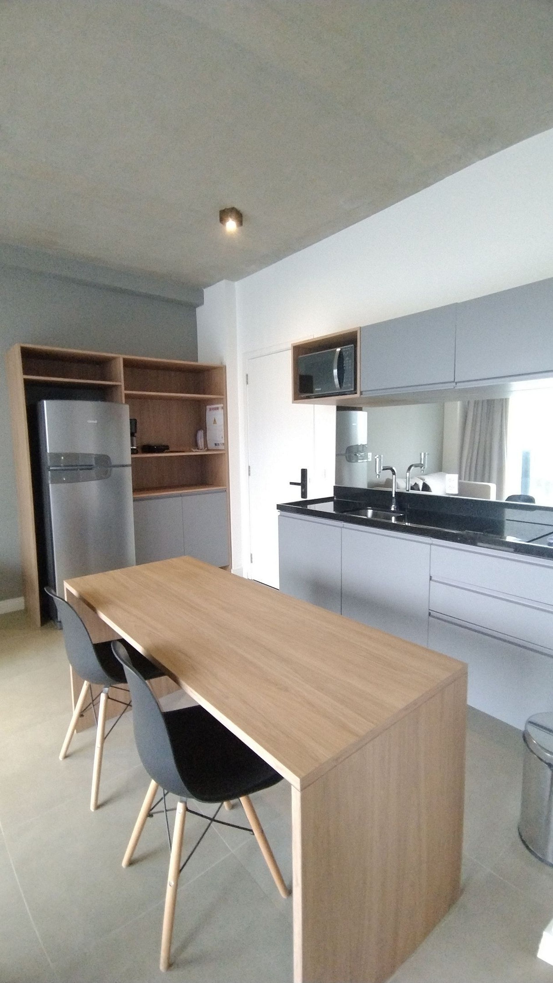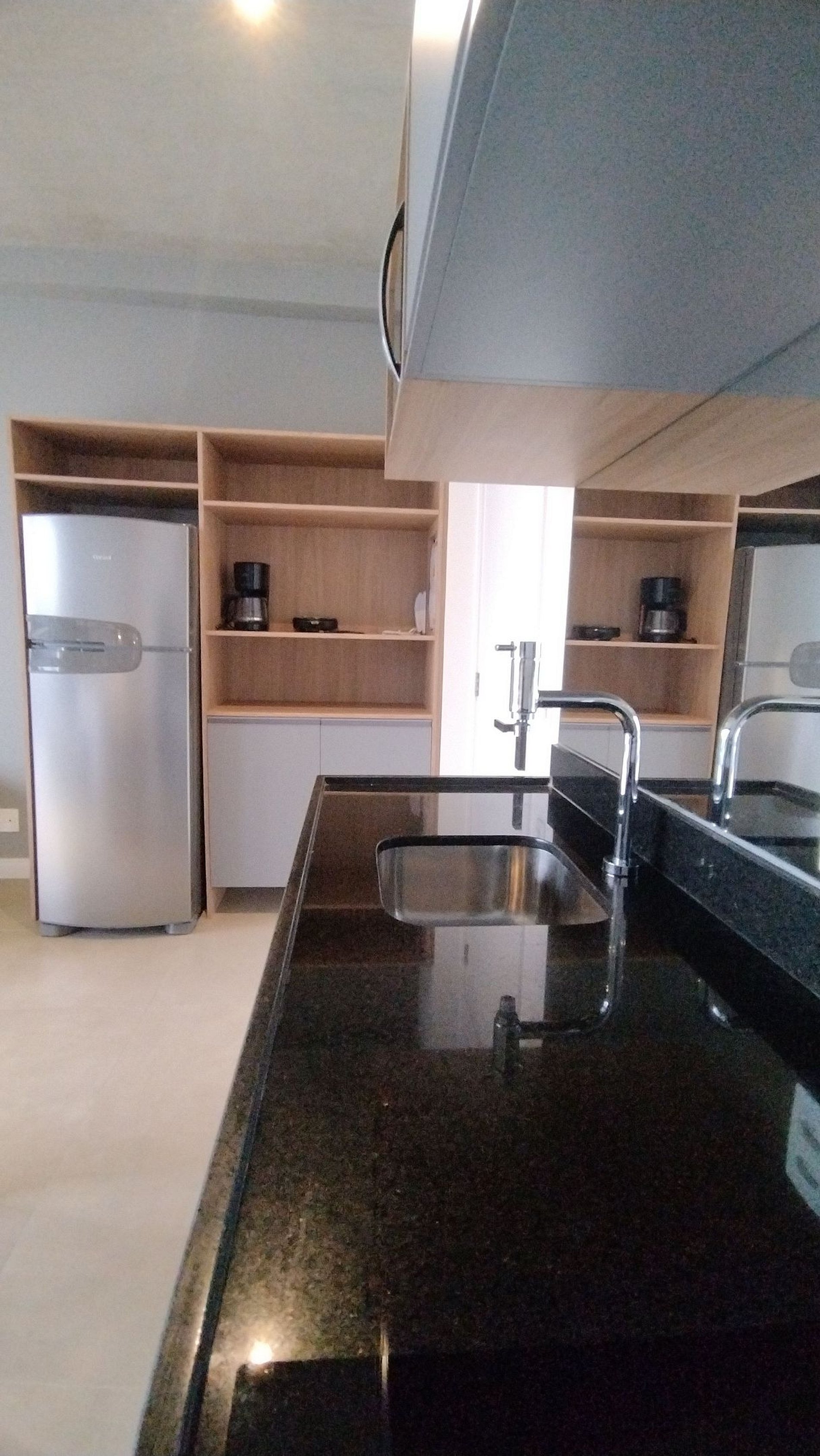 • Cozinha completa e espaçosa rica em armários equipada com Geladeira Grande , fogão cocktop de duas bocas , máquina de café elétrica, micro-ondas, liquidificador, sanduicheira e panelas e utensílios de qualidade.