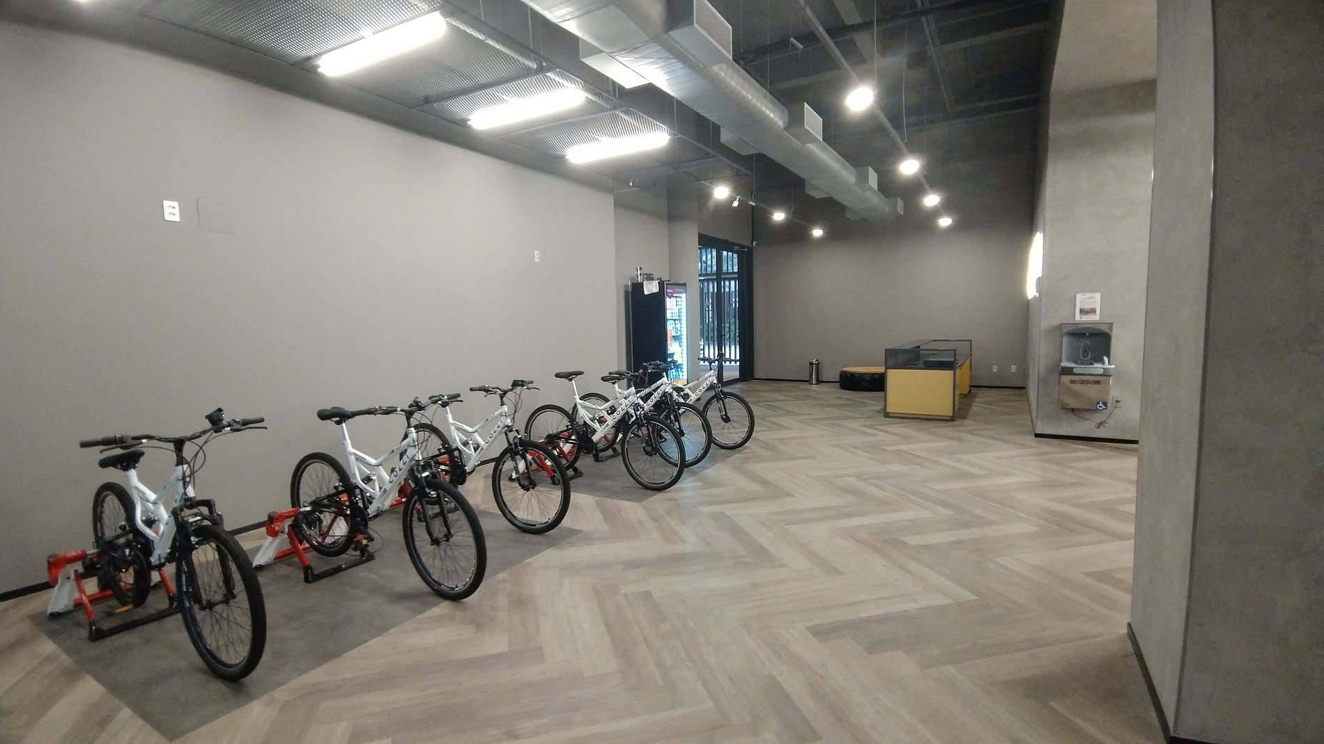 • Uma Big academia rica em aparelhos e bicicletas.
