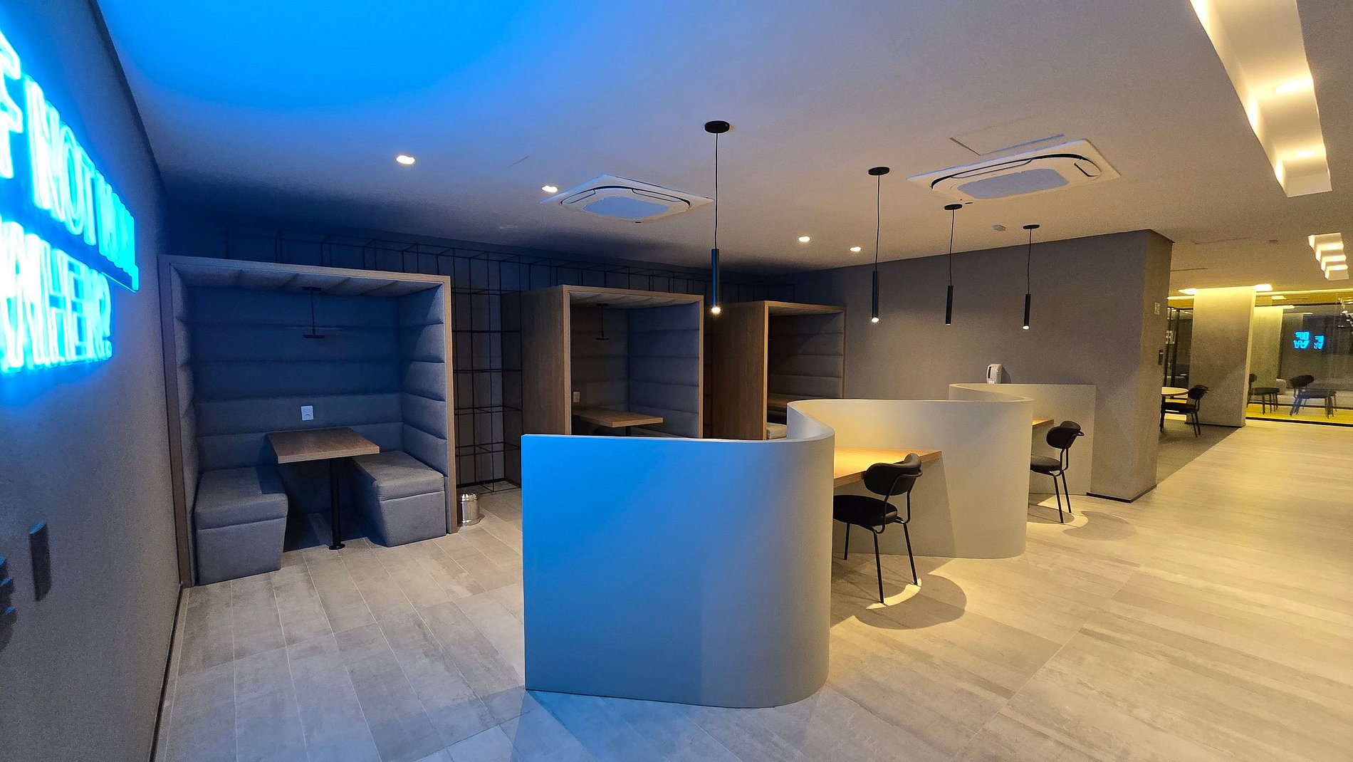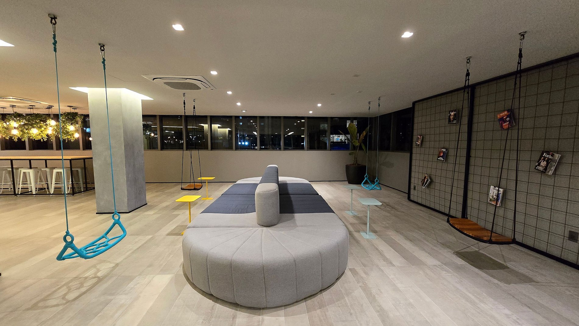 • Um belo Coworking com os mais variados espaços para trabalhar, sofás, mesas, salas de reunião individuais e para grupos.