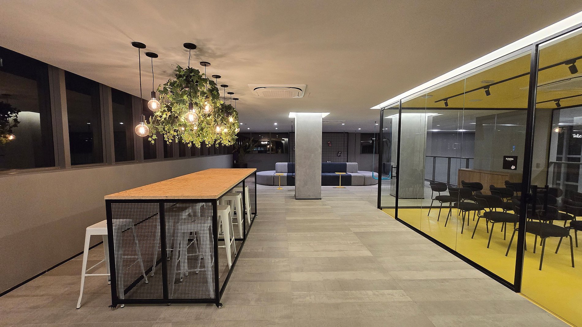 • Um belo Coworking com os mais variados espaços para trabalhar, sofás, mesas, salas de reunião individuais e para grupos.