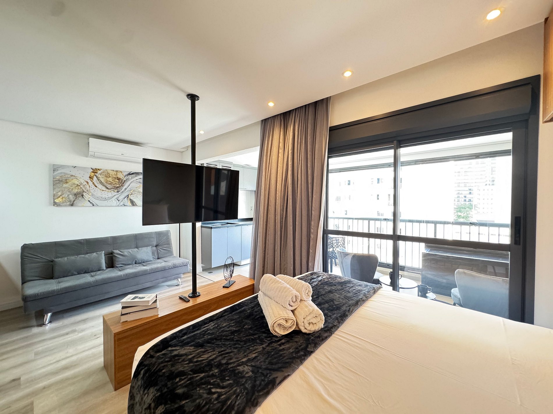 Um Oasis no coração de São Paulo. Edifício k360 dispõe de diversos estúdios e esta localizado na MELHOR região da capital paulistana , a Vila Mariana! Bairro onde se localiza o parque Ibirapuera. Este belíssimo empreendimento é novo, seguro e moderno, e conta com piscina, sauna, academia ,sportbar, entre outros. Os apartamento são completos e equipados para estadias curtas e longas. A localização é estupenda, próximo ao maior parque de São Paulo , mais de 100 restaurantes num raio de 1 km e a10 min a pé da Av Paulista.