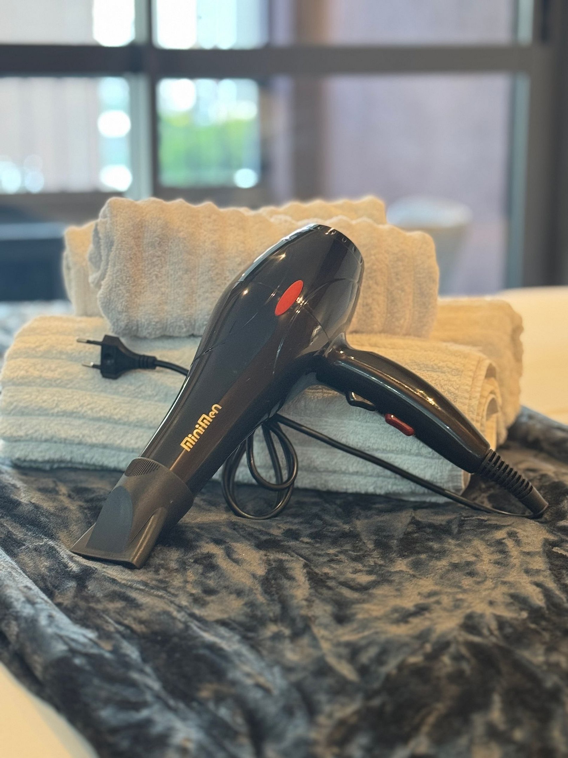 Pensando em sua conveniência, disponibilizamos um secador de cabelo e um ferro de passar. Por favor, note que a voltagem da unidade é de 110W.