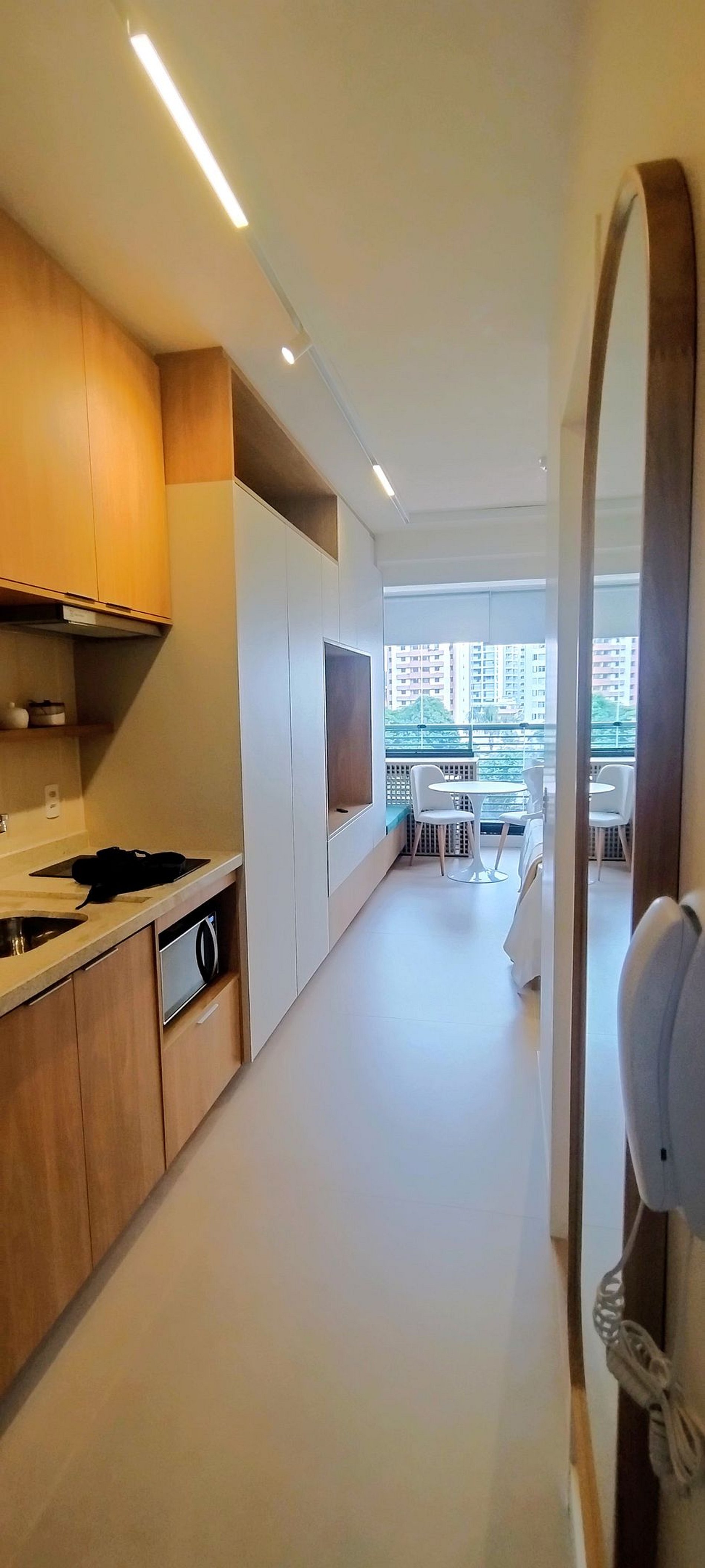 Belíssimo Studio localizado na zona sul da capital paulistana , no Broklin, bairro de alto padrão extremamente bem servido de bares, restaurantes e empresas. Este Belo apartamento esta em um empreendimento novo, seguro e moderno e conta com academia e lavanderia. O apartamento é completíssimo com decoração fina e elegante em tons de madeira, repleto em armários, excelente para longas estadias. A localização é privilegiada e estratégica próxima a Vila Olímpia e Moema.