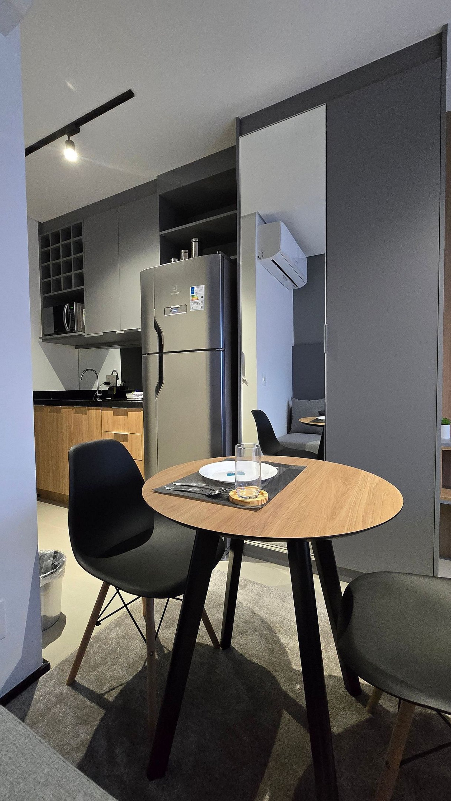 • Mesa redonda de jantar para duas pessoas.