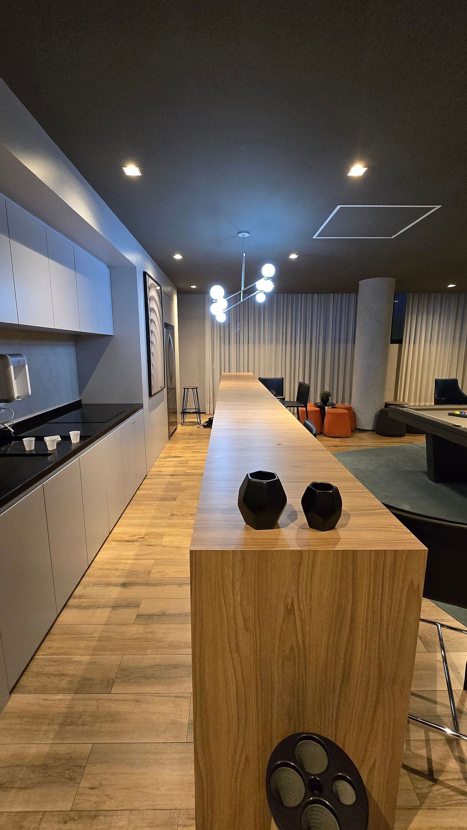 • Mesa de sinuca , cozinha compartilhada para refeições e minimercado