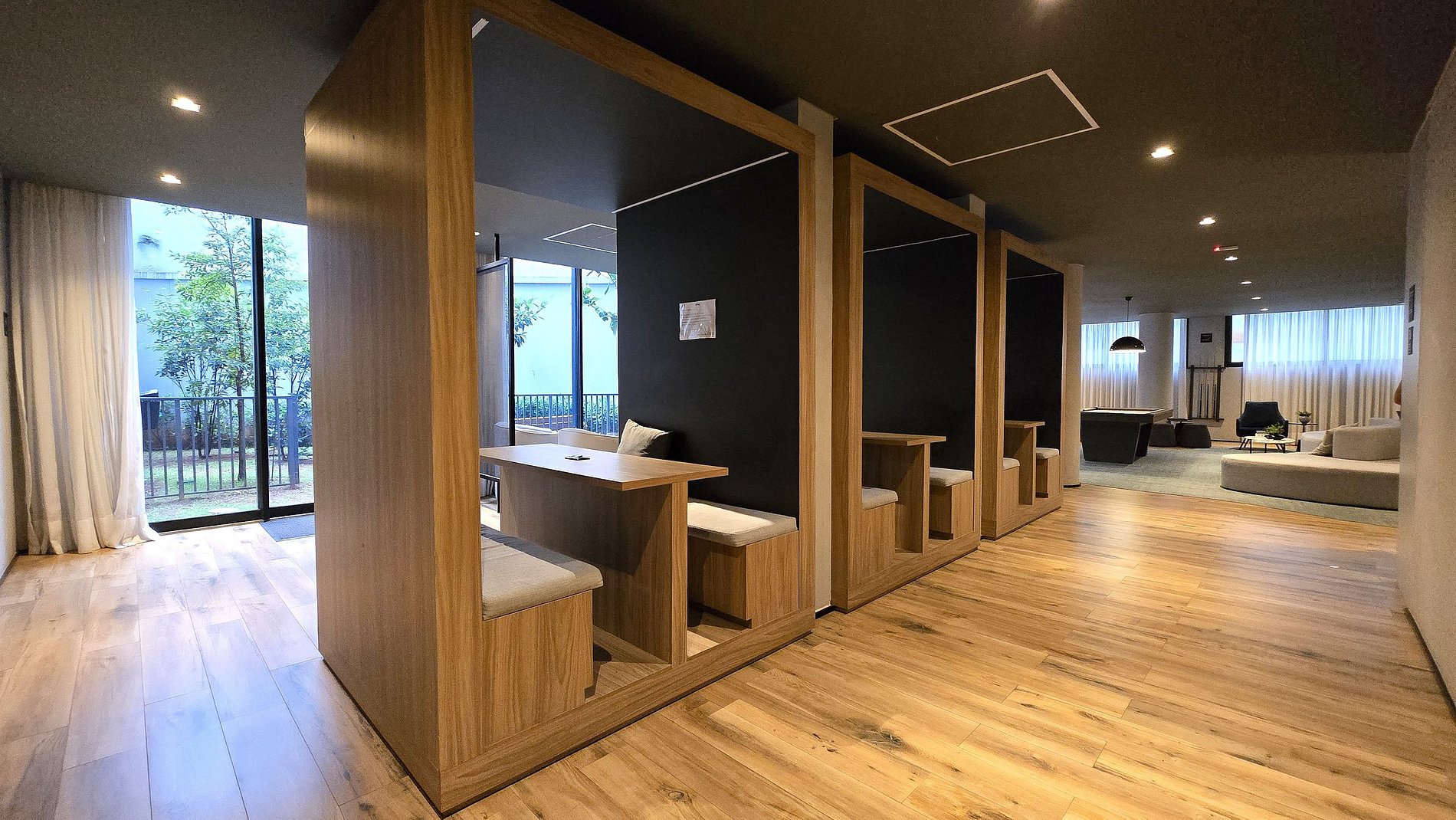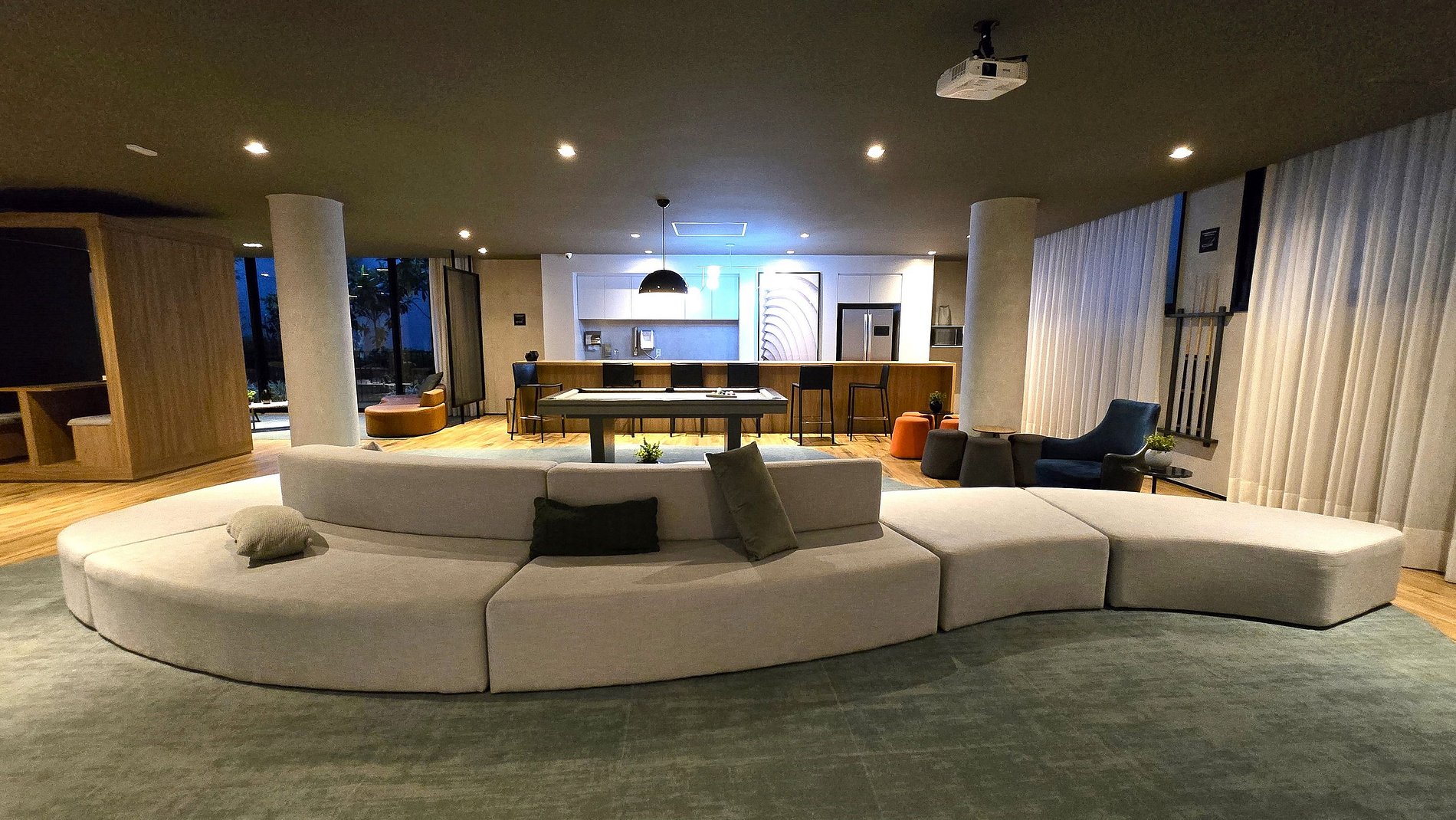 • Mesa de sinuca , cozinha compartilhada para refeições e minimercado