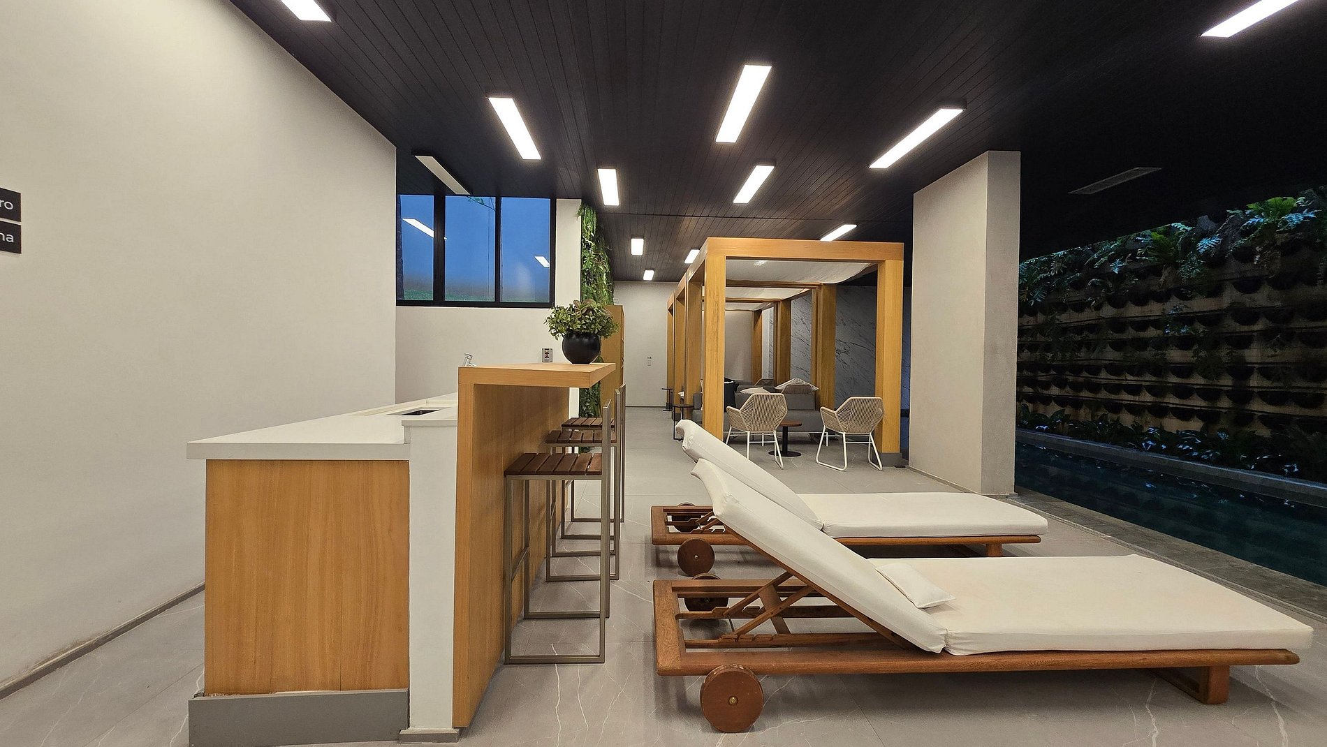 • Piscina com Raia de 20 metros , espreguiçadeiras e sofás.