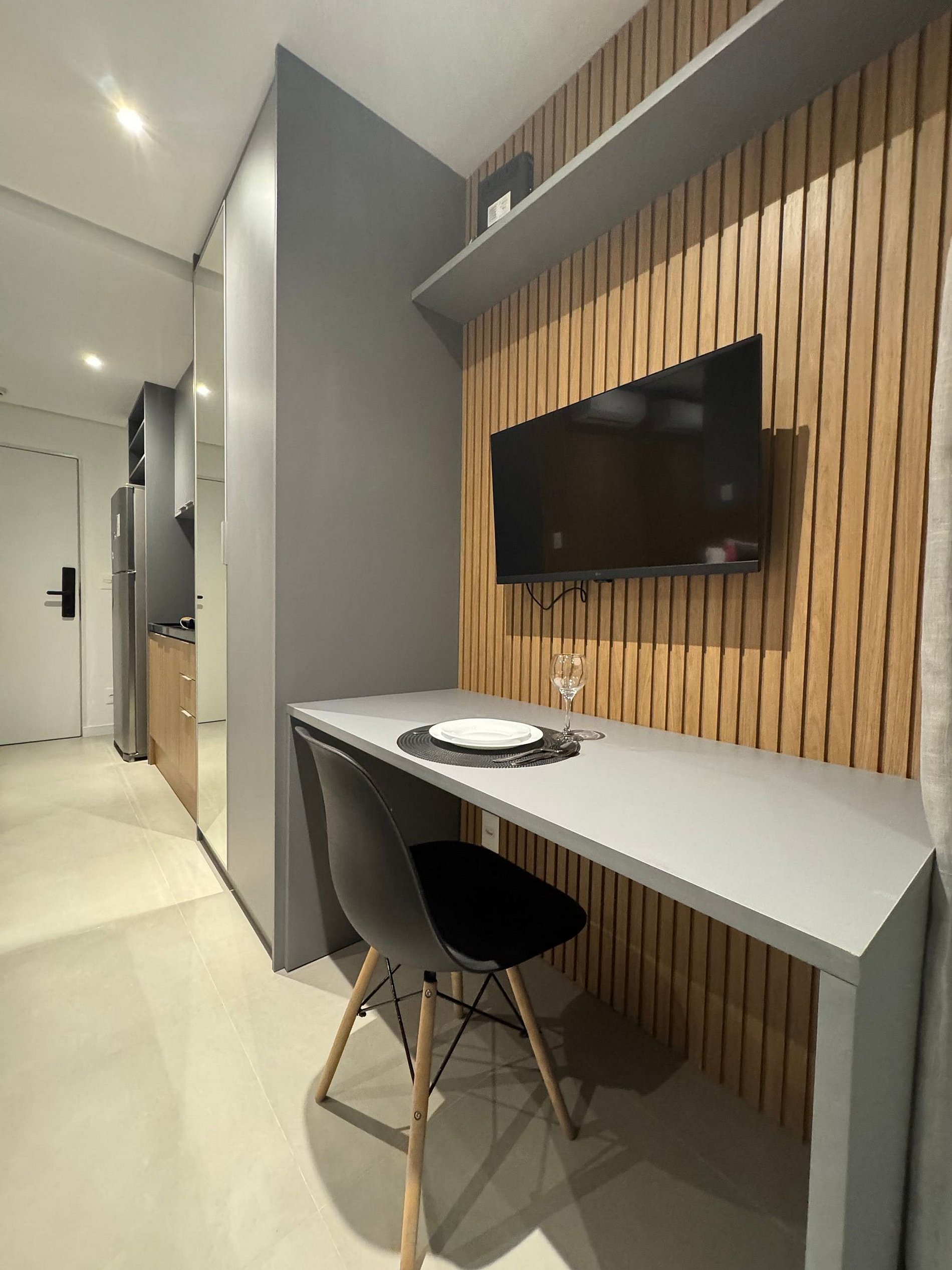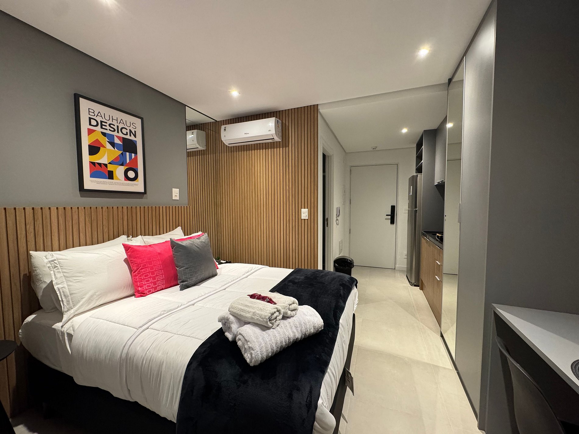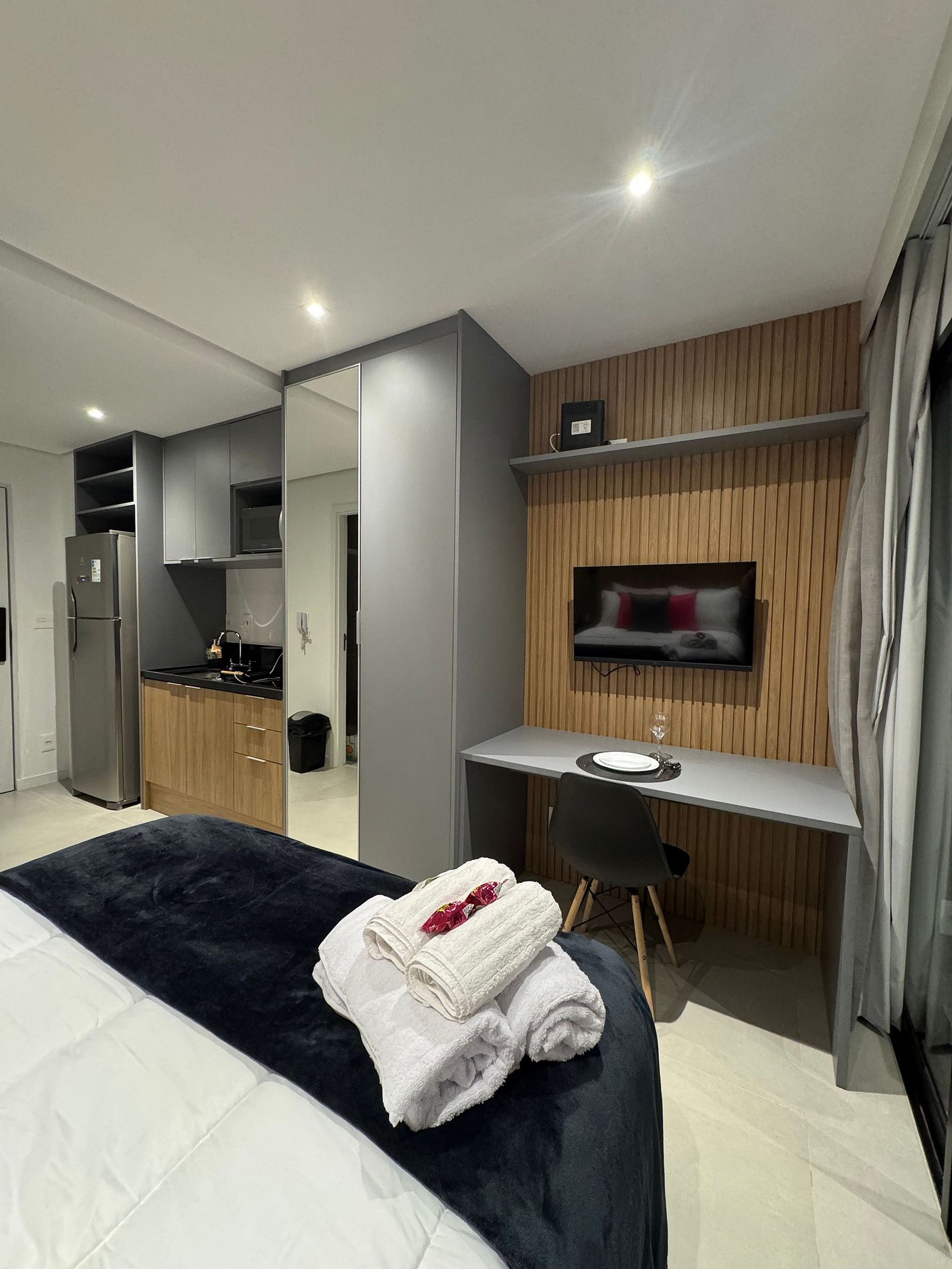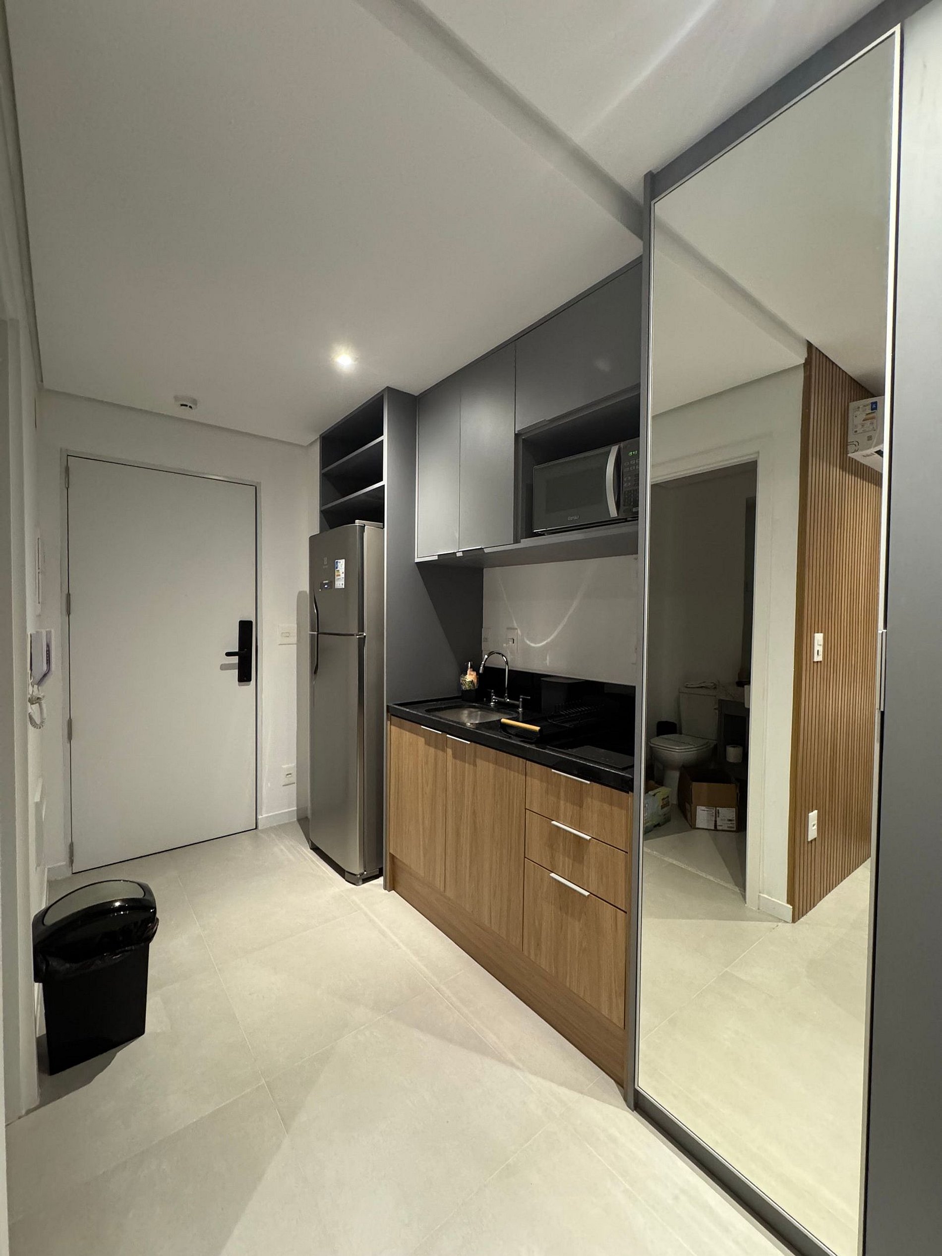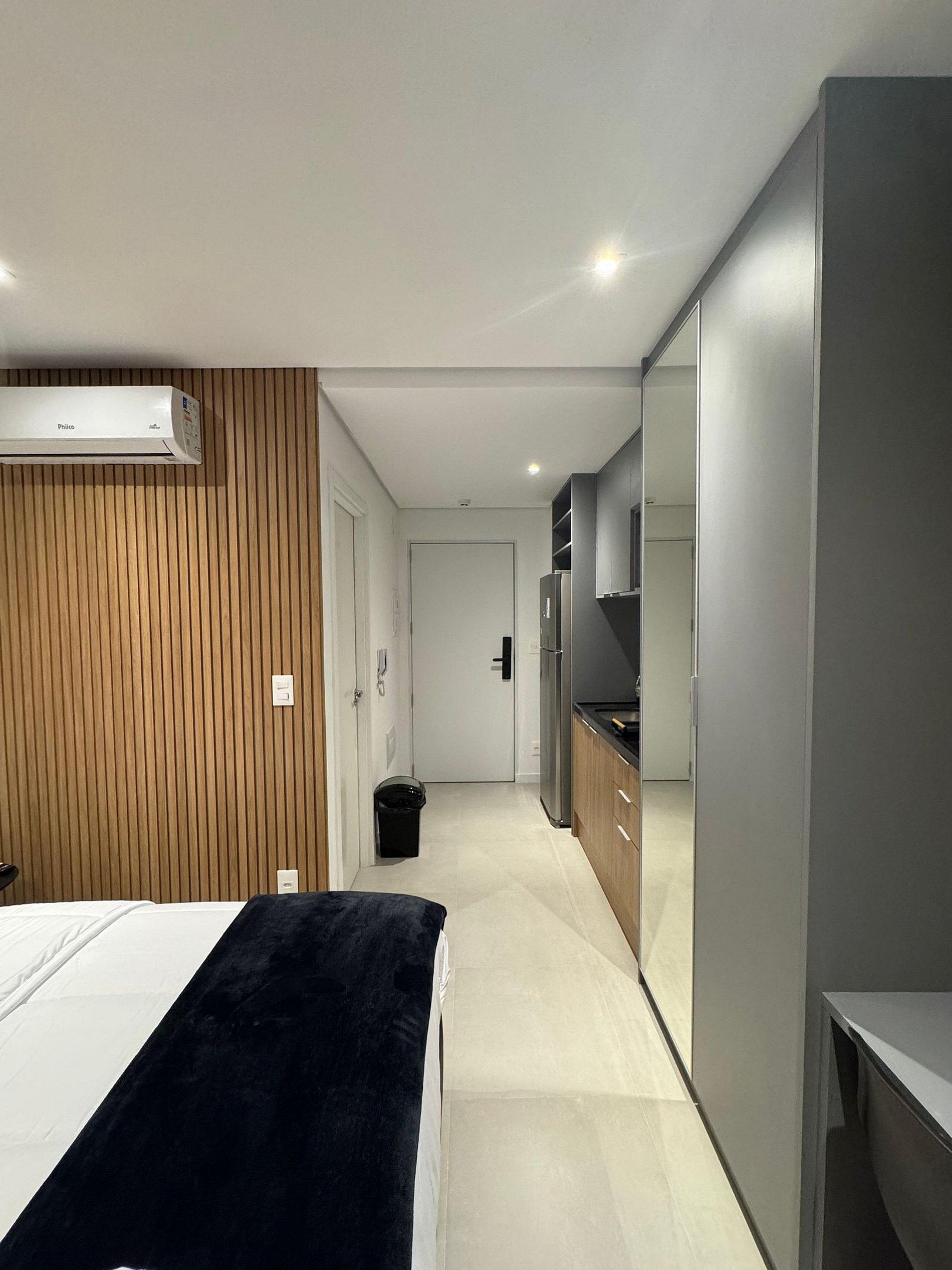 Studio charmoso e bem iluminado no coração de Pinheiros, no epicentro da vida urbana de São Paulo. Apartamento totalmente equipado para uma estadia confortável e tranquila, possui, ar-condicionado, Smart TV, Wi-Fi, Geladeira, cama Casal confortável, cozinha completa com microondas, cooktop. O empreendimento possui academia, lavanderia, minimercado e salão de jogos. A localização é estupenda são mais de 40 bares e restaurantes num raio de 1 km e 200m da estação Oscar Freire.