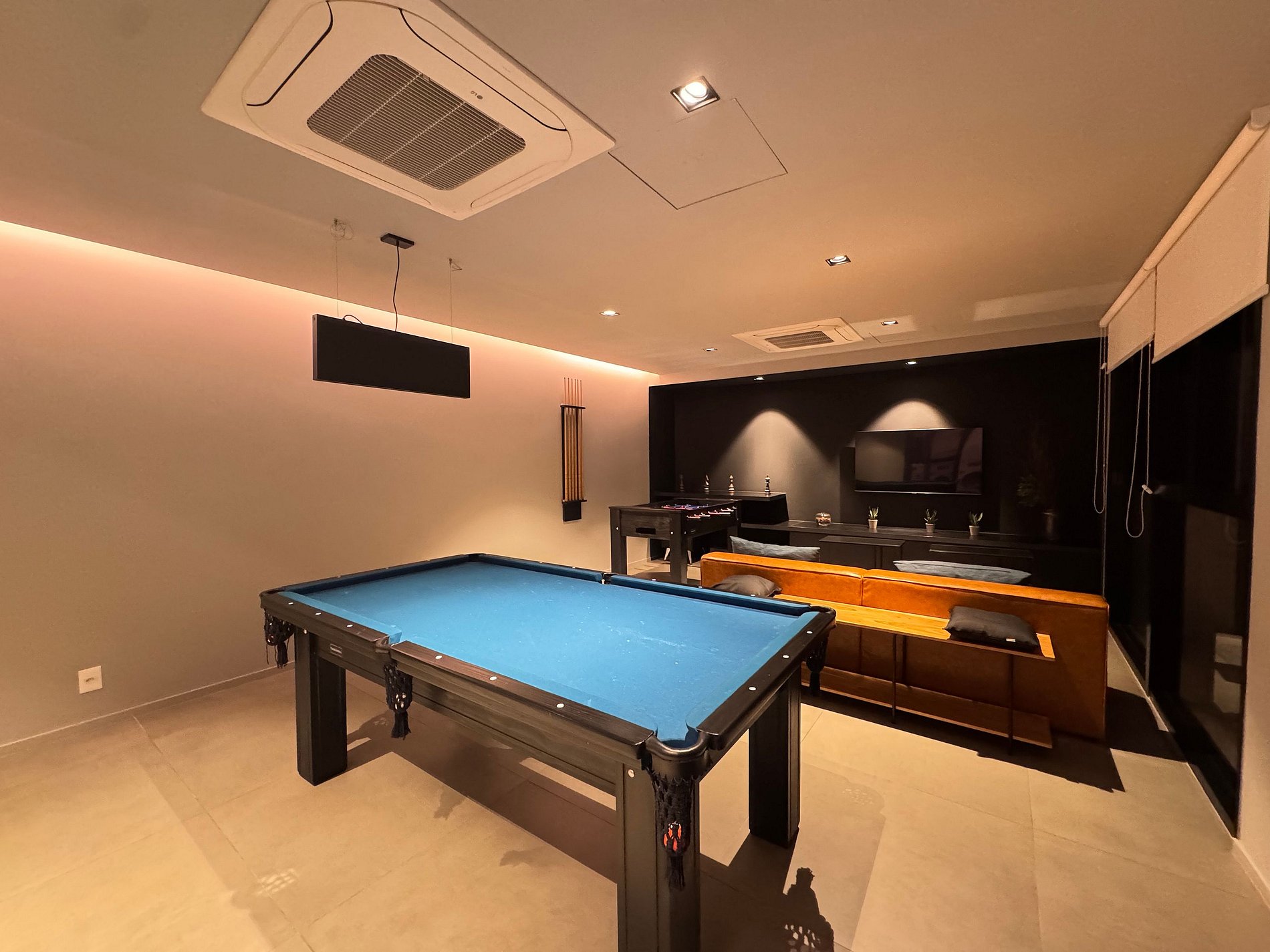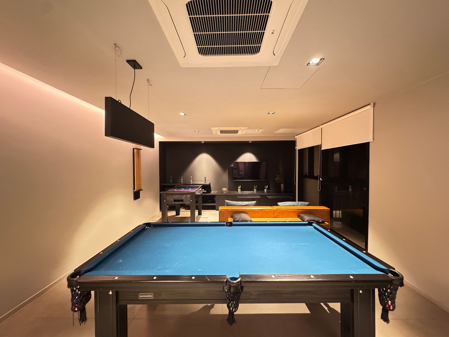 • Salão de jogos com Mesa de sinuca, Pebolim e Tv