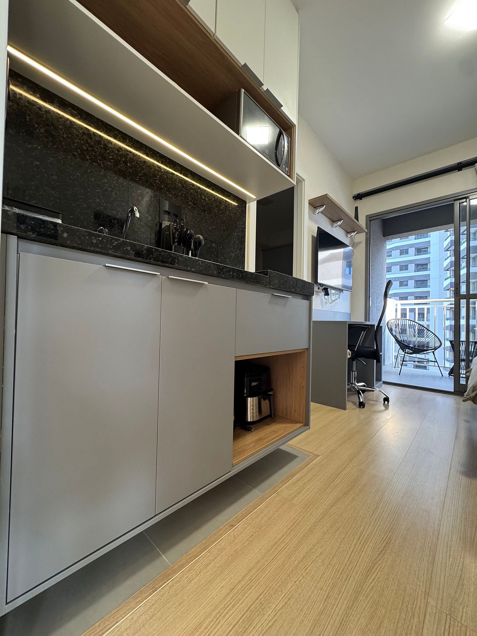 Studio charmoso e completo, localizado em um dos bairros mais bonitos e privilegiados de São Paulo, O Itaim! O apartamento conta com tudo que você precisa, cozinha equipada com fogão cooktop duas bocas, panelas de indução, micro-ondas, air frier e todos os utensílios necessários para uma estadia tranquila e aconchegante. Além de comodidades como, academia, rooftop , espaço para coworking e terraço. O Studio ainda conta com sacada para relaxamento e um confortável sofá para duas pessoas .