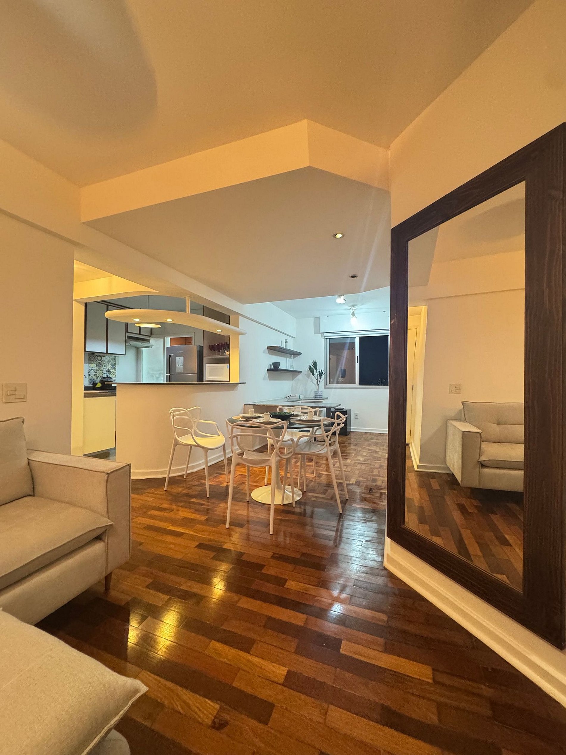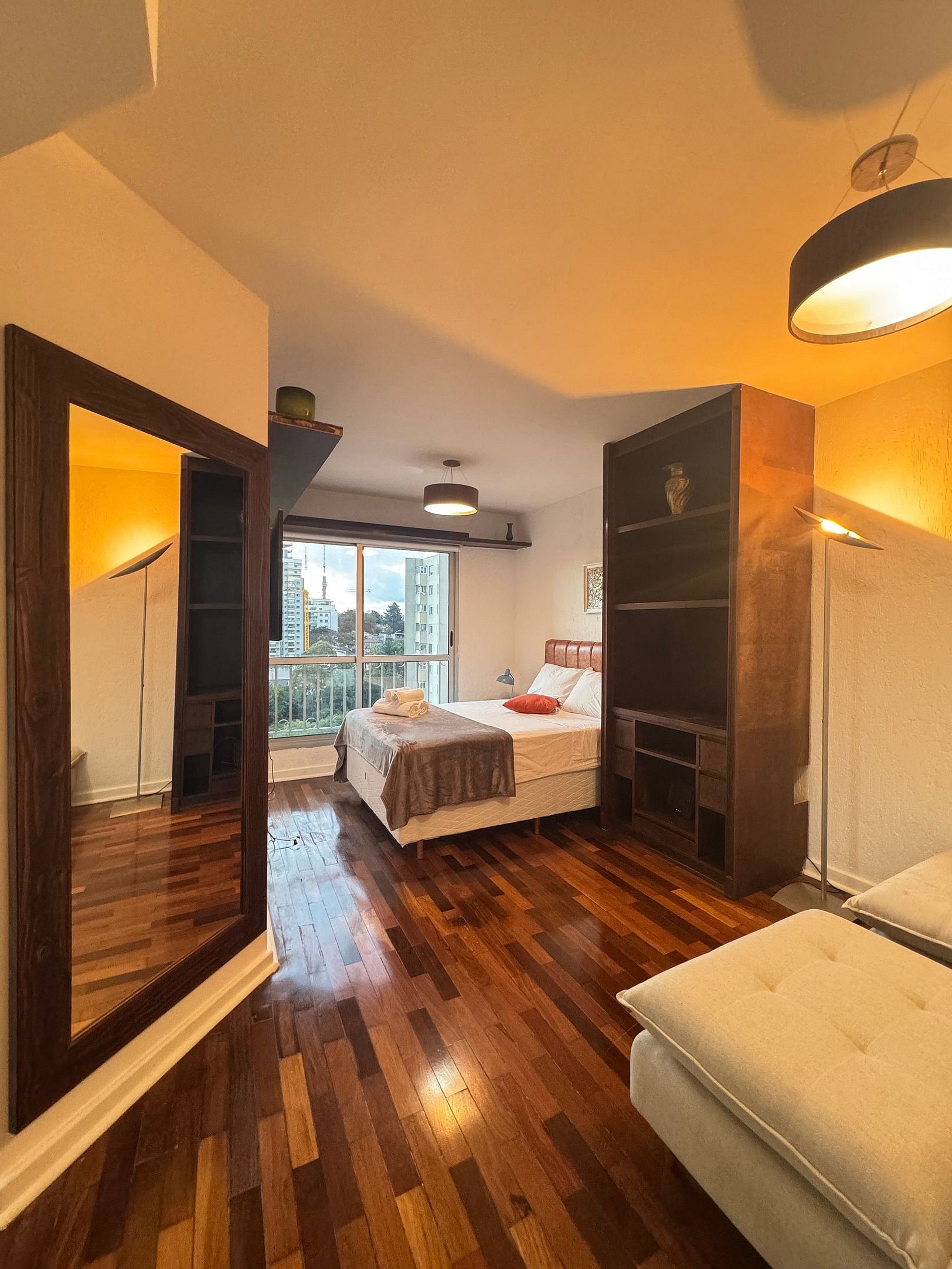 Apartamento amplo e belíssimo localizado em um dos mais cobiçados bairros da capital, Pinheiros ! Conta com uma suíte ampla com CAMA KING , closet rico em armários, além de um espaçoso banheiro com bancada em mármore. Dispõe de um segundo quarto integrado a sala, ambos com TV de Tela plana. Localizado 2 min do metro Sumaré, ao lado da Vila Madalena, a 10 min de carro do Allianz Parque, e com fácil acesso a AV. Faria Lima, AV paulista e Oscar Freire. Dispõe de garagem gratuita.