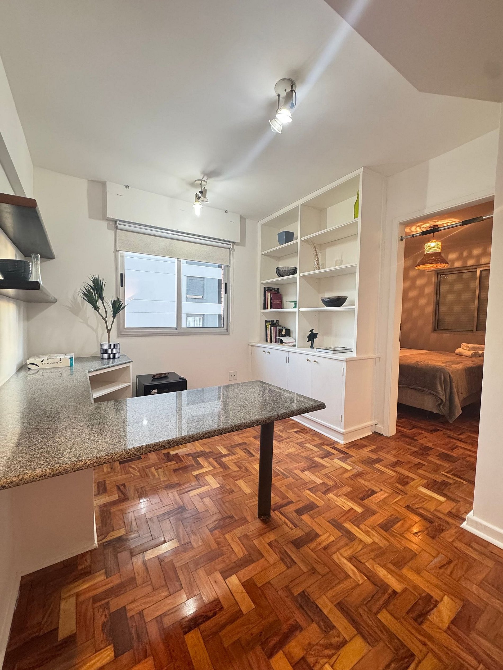 Apartamento amplo e belíssimo localizado em um dos mais cobiçados bairros da capital, Pinheiros ! Conta com uma suíte ampla com CAMA KING , closet rico em armários, além de um espaçoso banheiro com bancada em mármore. Dispõe de um segundo quarto integrado a sala, ambos com TV de Tela plana. Localizado 2 min do metro Sumaré, ao lado da Vila Madalena, a 10 min de carro do Allianz Parque, e com fácil acesso a AV. Faria Lima, AV paulista e Oscar Freire. Dispõe de garagem gratuita.
